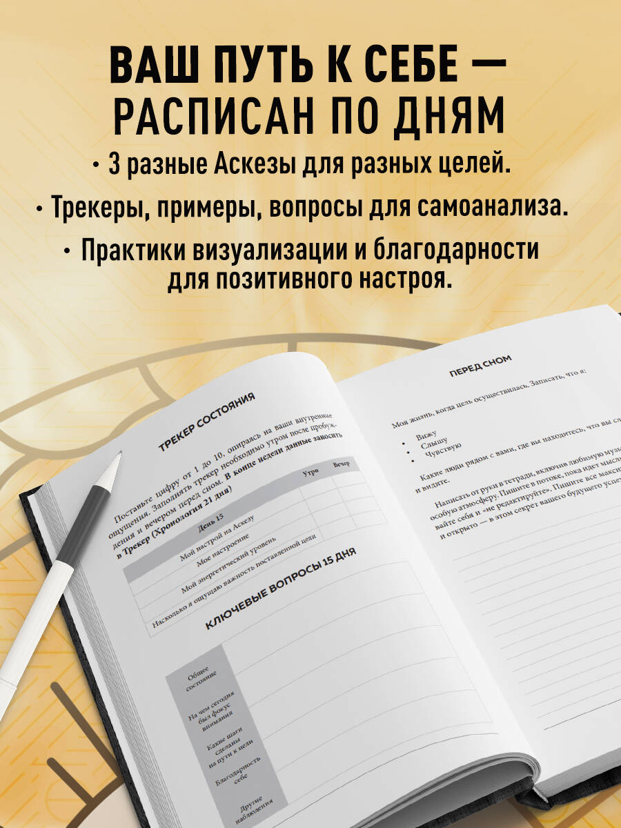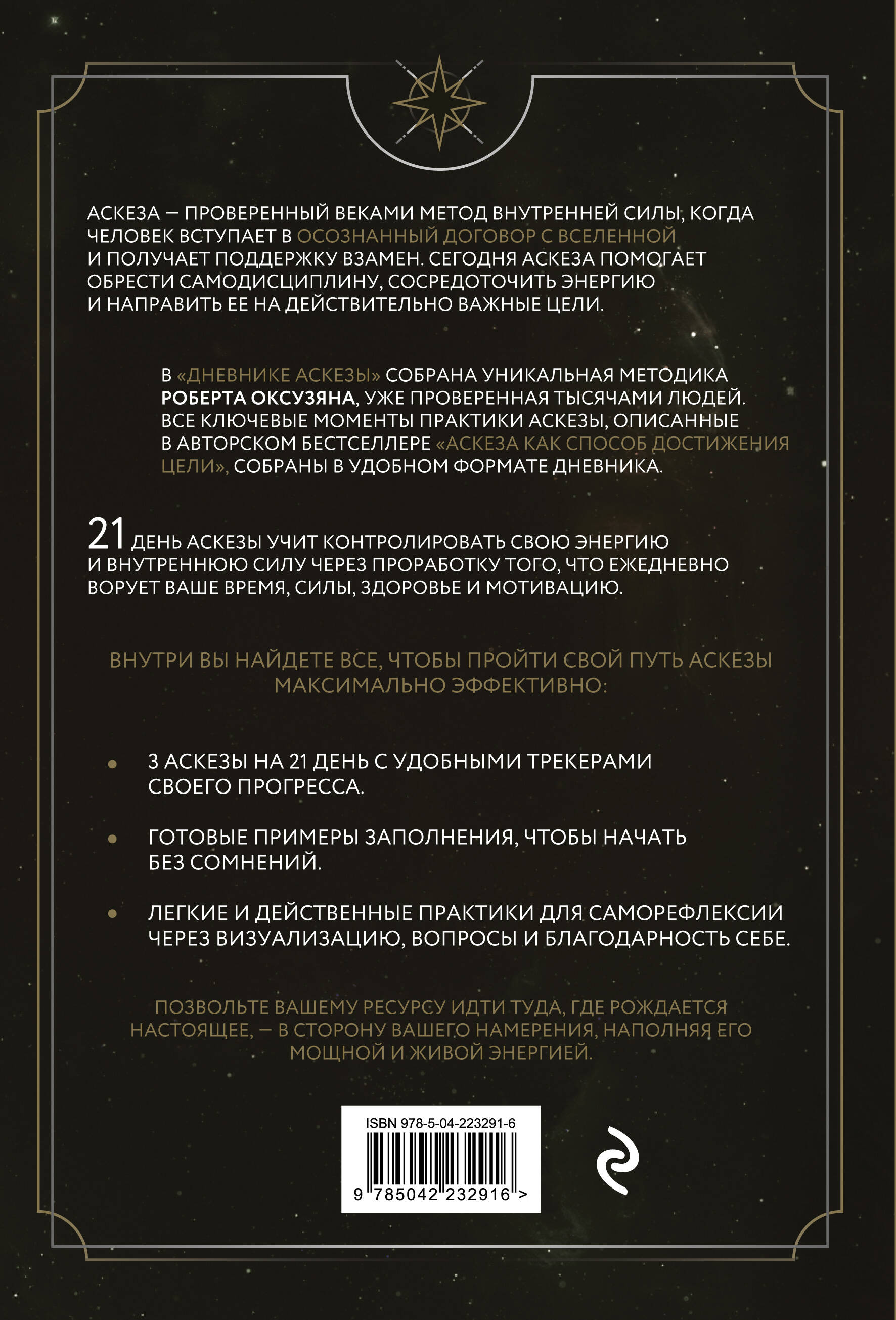 «Дневник Аскезы» - это ваша пошаговая и очень простая система для глубокой внутренней трансформации. Дневник построен на древней практике Аскезы, но с современным подходом. Практика Аскезы удивительно актуальна в наши дни: 21 день Аскезы учит контролировать свою энергию и внутреннюю силу через дисциплину и осознанный отказ от того, что ежедневно ворует ваше время, силы, здоровье, мотивацию. В дневнике удобно собрана и представлена уникальная и уже проверенная тысячами людей методика для самодисциплины от Роберта Оксузяна, автора бестселлера «Аскеза как способ достижения цели». Внутри вы найдете все, чтобы пройти свой путь Аскезы максимально эффективно: - 3 Аскезы на 21 день с удобными трекерами своего прогресса. - Готовые примеры заполнения, чтобы начать без сомнений. - Легкие и действенные практики для саморефлексии через визуализацию, вопросы и благодарности себе. Начните свой 21‑дневный путь, и вы увидите, на что способны, когда энергия работает на вас.| Издательство | ООО "Издательство "Эксмо" |