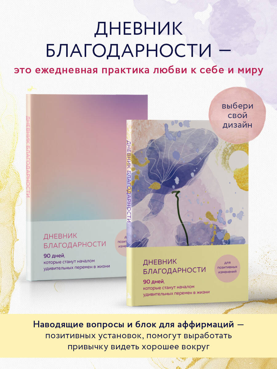 Изменить свою жизнь возможно. Нужно только желание и 5 минут в день! Дневник благодарности - это ежедневная практика любви к себе и миру. Наводящие вопросы и блок для аффирмаций - позитивных установок, помогут выработать привычку видеть хорошее вокруг. Порой стоит притормозить в ежедневной гонке и заметить маленькие радости: чашечка ароматного кофе утром, теплый ветерок в волосах, потрескивание дров в камине или шлейф любимого парфюма. За 90 дней вы: - вспомните свои успехи и вдохновитесь на новые; - научитесь выносить позитив даже из сложных ситуаций; - заведете список приятных мелочей; - раскрасите яркими цветами страницы (и свою жизнь). Дневник рассчитан на 3 месяца, на разворотах представлены мотивирующие цитаты, а удобный формат (16x23 см) позволит везде брать его с собой.| Издательство | ООО "Издательство "Эксмо" |