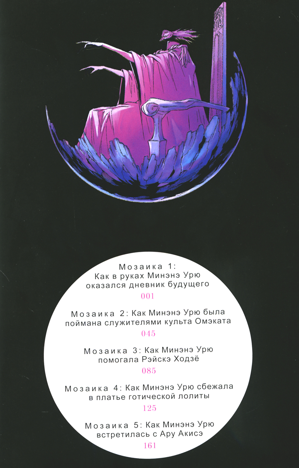 Минэнэ Урю - не только террористка, находящаяся в международном розыске, но и одна из двенадцати обладателей дневников будущего. «Дневник бегства» Минэнэ позволяет ей предвидеть пути отхода и таким образом дает преимущество в смертельной битве с остальными владельцами дневников. Ни соперникам по игре, ни полиции, ни даже спецслужбам не удается поймать изворотливую героиню, превращающую каждый свой побег в феерическое шоу. Беда в том, что живописные детали ее актов эскапизма не отражены в основном повествовании. Теперь это упущение исправлено - встречайте справочник фаната, в котором мы прольем свет на некоторые тайны сюжета «Дневника будущего».| Издательство | Фабрика комиксов |