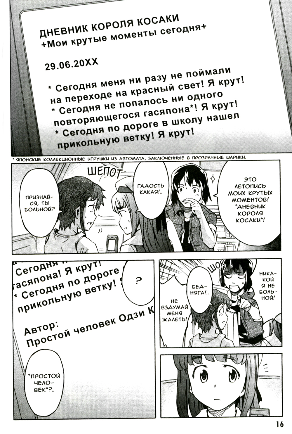У ничем не примечательного ученика средней школы Юкитэру Амано есть одно хобби - он ведет в своем телефоне дневник, куда записывает все, что происходит вокруг. Однажды утром он обнаруживает в нем записи из будущего. Поначалу Юкитэру не нарадуется открывшимся перед ним перспективам, но в один прекрасный день он натыкается на описание собственной смерти. Как оказалось, Юкитэру, сам того не подозревая, стал одним из двенадцати владельцев дневников будущего - участников беспощадной игры на выживание, организованной всемогущим повелителем времени и пространства. Удастся ли ему пройти игру? И может ли он довериться странной однокласснице Юно, заявившей, что они с ним обречены быть вместе?| Издательство | Фабрика комиксов |