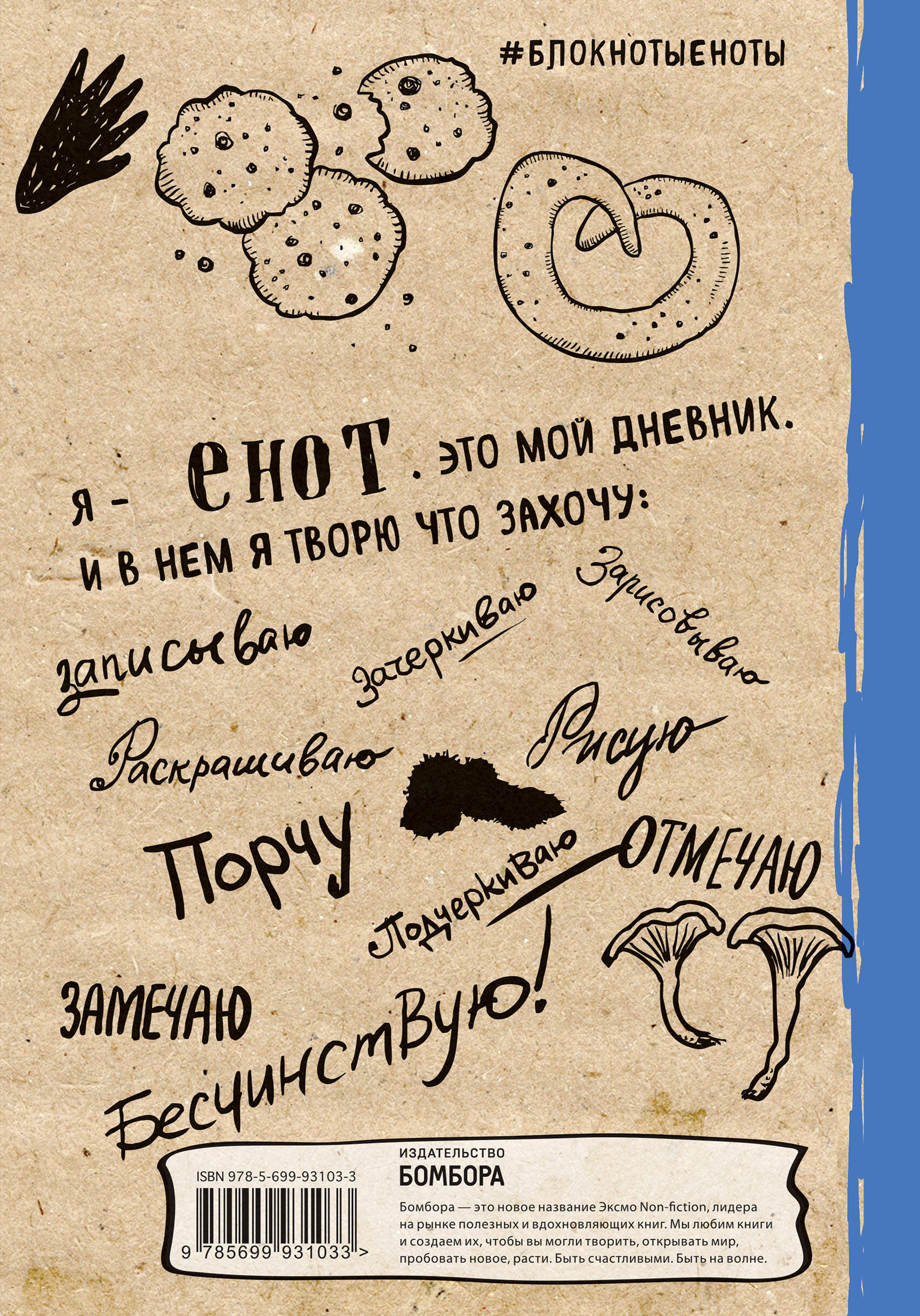 Надоели дневнички в рюшечках и сердечках? Тогда этот дневник, то что тебе нужно! Дерзкий енот объявляет войну "ми-ми-ми"! Записывай на каждой странице, что ты сделал, нашел или съел. Зарисовывай свои мечты и желания, составляй списки неизбежных дел, оценивай прошедший день по шкале котиков и мандаринов. Каждая страница - это новый день, который не похож на другие. Бери в руки ручку, карандаш, мелок или перо - твори и бесчинствуй!| Издательство | ООО "Издательство "Эксмо" |