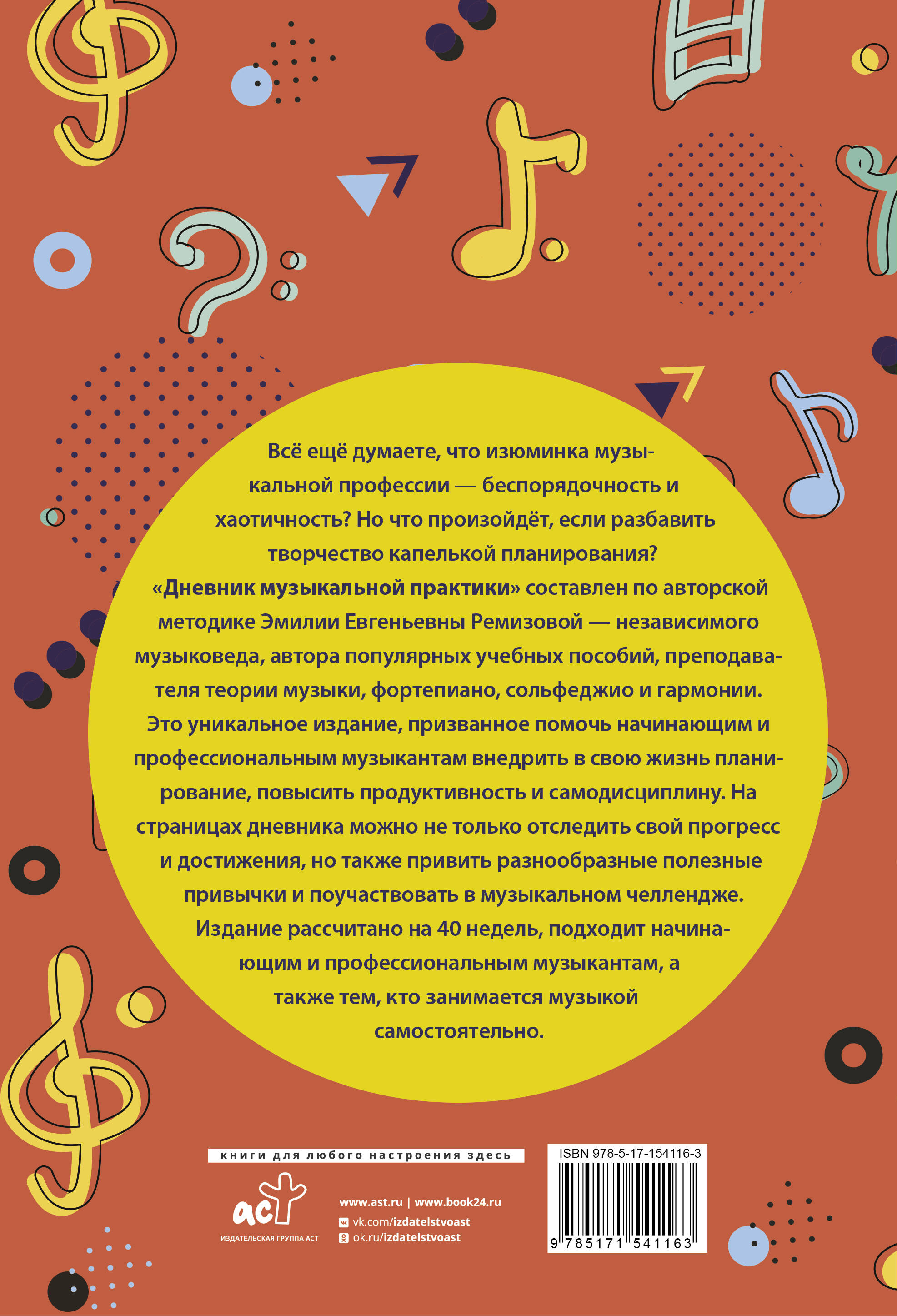 Всё ещё думаете, что изюминка музыкальной профессии - беспорядочность и хаотичность? Но что произойдёт, если разбавить творчество капелькой планирования? "Дневник музыкальной практики" составлен по авторской методике Эмилии Евгеньевны Ремизовой - независимого музыковеда, автора популярных учебных пособий, преподавателя теории музыки, фортепиано, сольфеджио и гармонии. Это уникальное издание, призванное помочь начинающим и профессиональным музыкантам внедрить в свою жизнь планирование, повысить продуктивность и самодисциплину. На страницах дневника можно не только отследить свой прогресс и достижения, но также привить разнообразные полезные привычки и поучаствовать в музыкальном челлендже. Издание рассчитано на 40 недель, подходит начинающим и профессиональным музыкантам, а также тем, кто занимается музыкой самостоятельно.| Издательство | ИЗДАТЕЛЬСТВО "АСТ" |