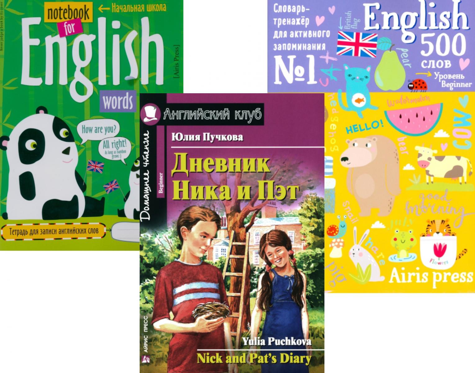 В комплект вошли тетрадь для записи английских слов, словарь тренажер для запоминания 500 английских слов и книга уровня Beginner на английском языке: «Дневник Ника и Пэт» Книга представляет собой сборник занимательных историй, о которых рассказали в своём дневнике Ник и его сестра Пэт. Они делятся с читателями своими воспоминаниями, в которых повествуют и о серьёзных и о забавных проблемах, возникающих на их жизненном пути, и о том, как взрослые (чаще всего мама или папа) помогают им найти выход из самых затруднительных ситуаций. Эта книга о том, как велика роль семьи в жизни каждого ребёнка. Каждая глава снабжена упражнениями, направленными на развитие навыков речи и отработку грамматики. Пособие адресовано учащимся 4 классов школ, лицеев и гимназий. Книга содержит англо-русский словарь, соответствующий данному этапу обучения. Словарь-тренажёр предназначен для активного запоминания английских слов. В пособии подобраны 500 слов, соответствующие уровню Beginner. Для быстрого запоминания слова сгруппированы по темам. На каждой странице - новая тема и небольшой диалог. Один из клапанов обложки отрезается и используется как закладка. Закрывая закладкой поочередно слова на английском и русском языке, удобно прорабатывать лексику и проверять, насколько хорошо усвоена тема. Для детей от 6 лет.| Издательство | Айрис-Пресс |