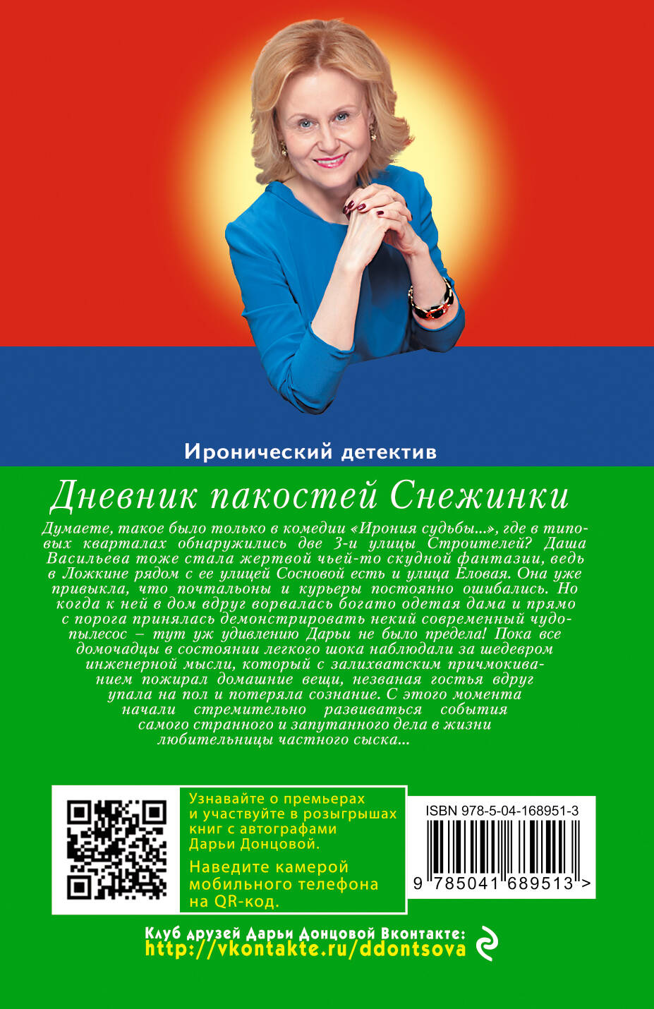 Думаете, такое было только в комедии «Ирония судьбы…», где в типовых кварталах обнаружились две 3-и улицы Строителей? Даша Васильева тоже стала жертвой чьей-то скудной фантазии, ведь в Ложкине рядом с ее улицей Сосновой есть и улица Еловая. Она уже привыкла, что почтальоны и курьеры постоянно ошибались. Но когда к ней в дом вдруг ворвалась богато одетая дама и прямо с порога принялась демонстрировать некий современный чудо-пылесос - тут уж удивлению Дарьи не было предела! Пока все домочадцы в состоянии легкого шока наблюдали за шедевром инженерной мысли, который с залихватским причмокиванием пожирал домашние вещи, незваная гостья вдруг упала на пол и потеряла сознание. С этого момента начали стремительно развиваться события самого странного и запутанного дела в жизни любительницы частного сыска…