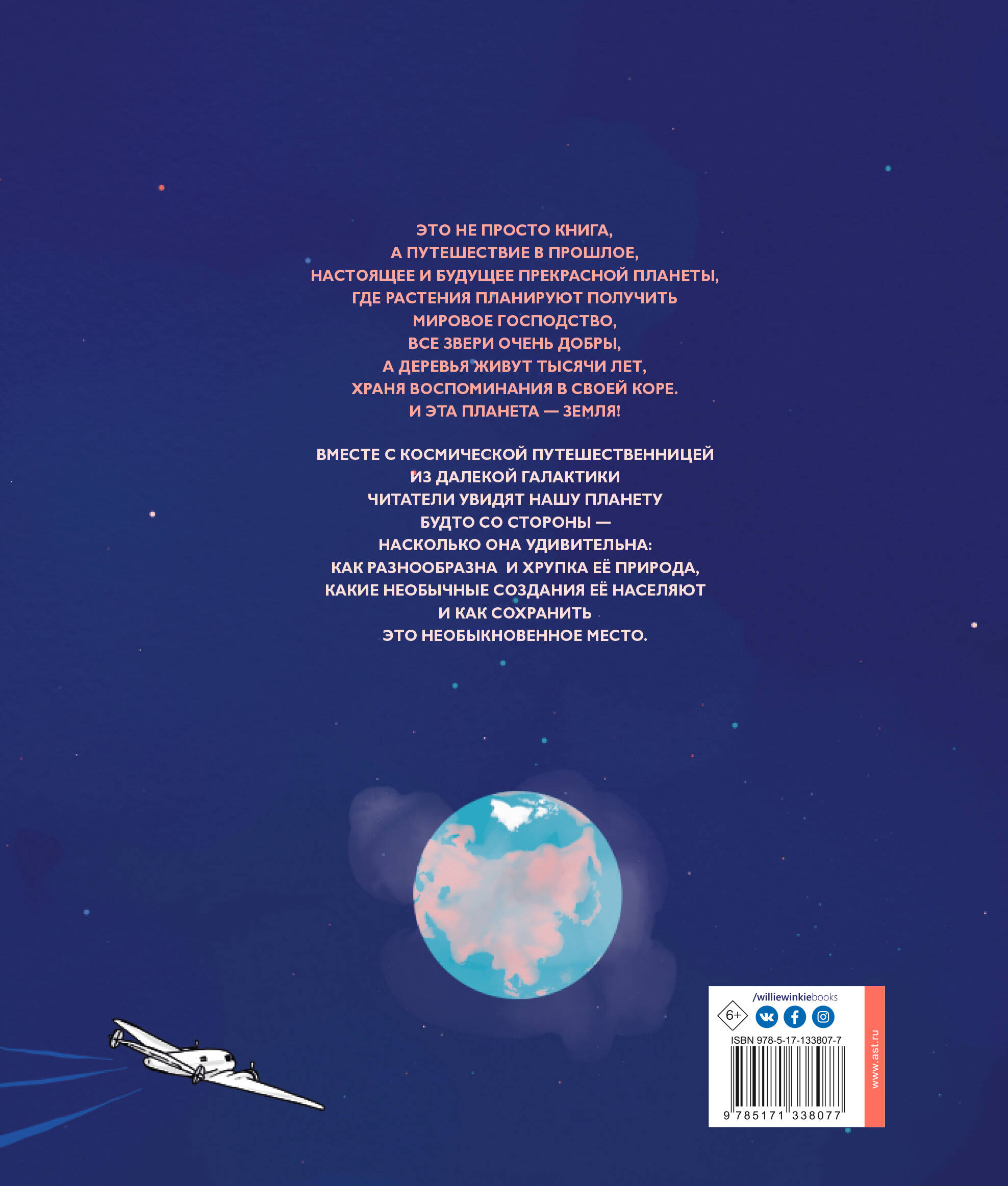 Это не просто книга, а путешествие в прошлое, настоящее и будущее прекрасной планеты, где растения планируют получить мировое господство, все звери очень добры, а деревья живут тысячи лет, храня воспоминания в своей коре. И эта планета - Земля! Вместе с космической путешественницей из далекой галактики читатели взглянут на нашу планету будто со стороны - и увидят, насколько она удивительна: как разнообразна и хрупка её природа, какие необычные создания её населяют, как уникальна культура землян. Книга состоит из 10 научно-популярных эссе из самых разных областей науки: биологии, культурологии, истории, климатологии, экологии, литературоведения. К каждому из них прилагается подробная карта-разворот, полная познавательных фактов, названий и дат. Текст и иллюстрации "атласа" вместе создают особое, почти философское настроение, толкающее на размышления о прошлом Земли и о том, как можно повлиять на её будущее.| Издательство | ИЗДАТЕЛЬСТВО "АСТ" |