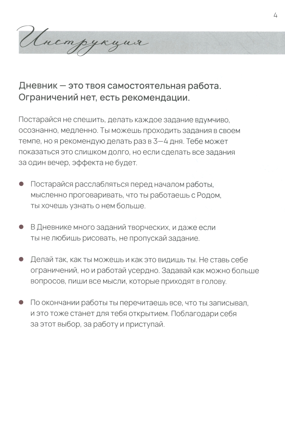 «Дневник Рода» - это не просто книга, а твой компас в глубинах семейной истории и мудрости предков. Каждая страница приглашает тебя занять активную позицию в исследовании своих корней, гармонизируя внутренний мир и внешние реалии. Здесь ты сможешь записывать свои мысли, чувства и открытия, делая шаг к пониманию своих родовых программ и наследия. Эта практика позволит не только лучше понять себя, но и установить связь с теми, кто жил до тебя. Данная работа поможет выявить неосознанные паттерны, передающиеся из поколения в поколение, и трансформировать их в созидательные силы. «Дневник Рода» проведет тебя по этому пути. В «Дневнике» соединяются современные методы психологической работы и древние традиции, что делает процесс исследования глубоким и эффективным. Прислушивайся к своей интуиции и открывай страницы своего прошлого, чтобы создать более светлое будущее. Впереди тебя ждут новые знания и осознания, которые помогут развить силу, скрытую внутри тебя. Каждая запись в «Дневнике Рода» - это не просто текст на странице, а живое дыхание твоей истории. Воспоминания о предках, их радостях и горестях, достижениях и ошибках становятся твоими путеводителями в самопознании. Бесконечные спирали вашего рода переплетаются в единую ткань, и каждая ниточка - это шанс на исцеление, понимание и преобразование. С помощью «Дневника» ты сможешь научиться извлекать уроки из накопленного опыта своих предков. Взаимосвязи, казавшиеся пылью в далеком прошлом, станут сокровищами, из которых ты можешь создать свое уникальное видение жизни. Обязанности и мечты, реализованные и нераспознанные, обретут свои истинные проявления. «Дневник Рода» помогает не только исследовать, но и переосмысливать свои родовые программы. Наполняя страницы своими осознаниями, ты начинаешь процесс важной внутренней трансформации. Ты сможешь осознанно подходить к своим решениям, меняя курс своей жизни и влияя на судьбы следующих поколений. Время действовать - открой двери в будущее вместе с подготовленным «Дневником Рода».| Издательство | Рипол Классик |
