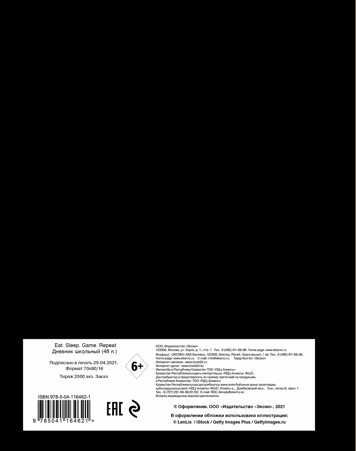 Аннотация: Дневник школьный. Eat. Sleep. Game. Repeate (48 л., твердая обложка)
