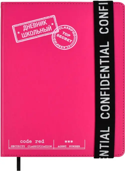 Дневник школьный, КОНФИДЕНЦИАЛЬНО формат А5+, 48 л., твёрдый переплёт. Обложка: искусственная кожа "Плонже", тиснение фольгой, застёжка-резинка с шелкографией в одну краску, углы обложки закруглённые, углы блока закруглённые, одно ляссе, красочность форзаца: печать в одну краску, красочность блока: печать в одну краску. Блок: бумага - белый офсет, 80 г/м?, универсальная шпаргалка. Индивидуальная упаковка: ПЭТ-пакет.