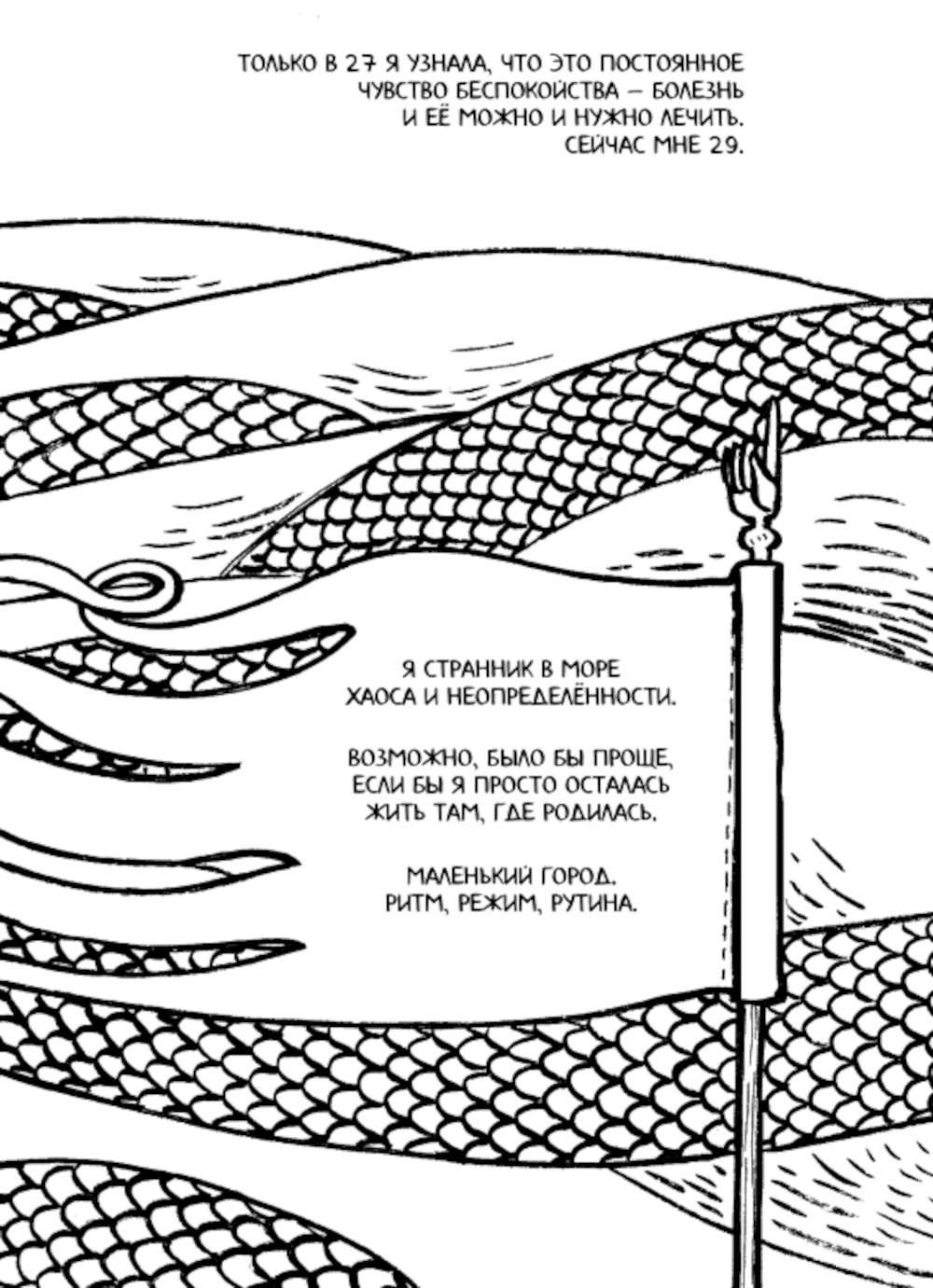 «Дневник штормов» - комикс о путешествии Юлии Никитиной из Салехарда к Карскому морю. Несмотря на постоянное чувство беспокойства, она отправляется на поиски удивительных мест, запоминающихся встреч и гармонии с собой. На своём пути Юлия встречает разных людей, которые помогают ей увидеть горы Полярного Урала, шахтёрские посёлки Воркутинского кольца и сопровождают её в путешествии до края земли. Книга Юлии Никитиной - это не только путевые заметки путешественника, но и искренний рассказ о трудностях борьбы с тревожным расстройством.| Издательство | Бумкнига |