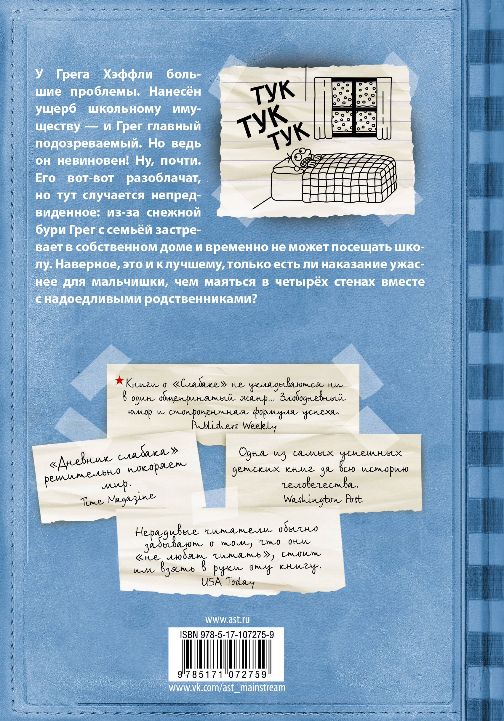 «Дневник слабака» - один из лучших книжных сериалов последних лет, постоянно бьющий рекорды продаж и издающийся многомиллионными тиражами. Автор серии, Джефф Кинни, придумал уникальный формат: комиксы в книге чередуются с текстом, а рассказ в виде дневниковых записей ведется от лица главного героя, незадачливого подростка Грега Хэффли. Комичная, трогательная, полная приключений и злободневных шуток история взросления мальчишки из американской глубинки универсальна - смеются над напастями Грега и сопереживают ему люди со всего мира. Книги про слабака любят читать и дети, и взрослые, ностальгирующие по детству. По мотивам книг уже сняли несколько фильмов, а в 2021 году этот книжный блокбастер получит и телевизионное воплощение: компания Disney запускает одноименный анимационный сериал, который наверняка станет одним из самых популярных шоу канала. Так что самое время познакомиться с героями веселой саги, если вы еще этого не сделали, - слабак теперь с вами надолго! И вы его непременно полюбите.