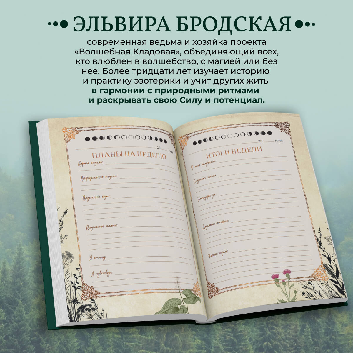 «Дневник современной ведьмы» - синтез Книги Теней, личного дневника и журнала для заметок, где вы станете и читателем, и соавтором, и творцом своего волшебного мира. Внутри - статьи, тесты, трекеры и советы на разные темы, составляющие собой важные вехи духовной жизни ведьмы. Часть страниц оставлена пустой - заполнить их предстоит вам. Таро, магия мысли и аффирмации, травы и минералы, история ведьмовства и виды ведьм, Колесо Года и духовное здоровье, лунные циклы и защитная магия, и даже «немагические» способы влияния на состояние - всему нашлось место! Вторая половина «Дневника» - недатированный еженедельник для фиксации планов и результатов недели и всего, что вы посчитаете нужным, от карты недели до текущих задач, от лунного дня до эмоций и ощущений. Регулярное использование «Дневника» усилит вашу внутреннюю ведьму, поможет делать все в срок и уместить духовные практики и инсайты в бурный ритм современной жизни. Сочетание полезных материалов и пространства для творчества позволит очистить разум от информационного мусора, заземлиться и организовать мысли - бесценно в век цифровизации. А красивое оформление в стиле учебника волшебной школы с первых страниц создаст неповторимую атмосферу. Автор-составитель «Дневника» - Эльвира Бродская, современная ведьма и хозяйка проекта «Волшебная Кладовая», автор книги «Магия очищения и защиты: от психоэнергетической гигиены до настоящего волшебства». В сети известная как vk_wonder. В книге вас ждет бонус от автора - QR-код, где вы найдете подарки и материалы для распечатки: ведьмовские стикеры-напоминалки, список дел для ведьмы на каждый день, этикетки для волшебных бутылочек и коробочек, авторскую аудиомедитацию и первую главу книги «Магия очищения и защиты».| Издательство | ООО "Издательство "Эксмо" |