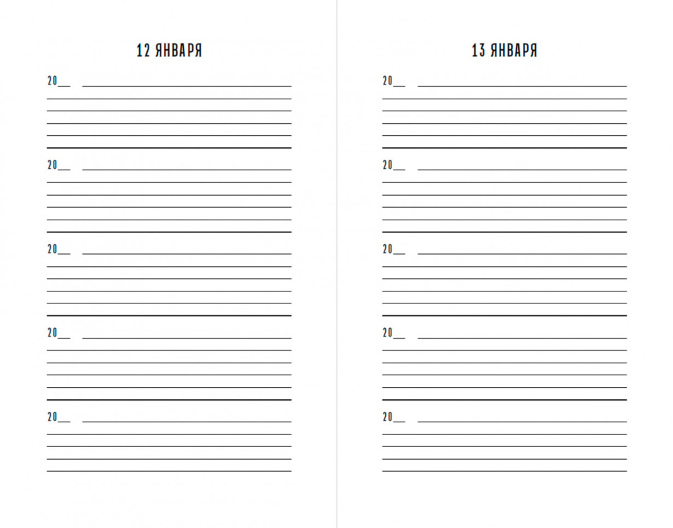Каждая страница дневника - один календарный день. Начните с любой даты и просто делайте записи ежедневно в течение 5 лет. Возвращаясь к уже заполненным страницам, вы снова вспомните события, мысли и впечатления той же даты год, два, три, четыре, пять лет назад.