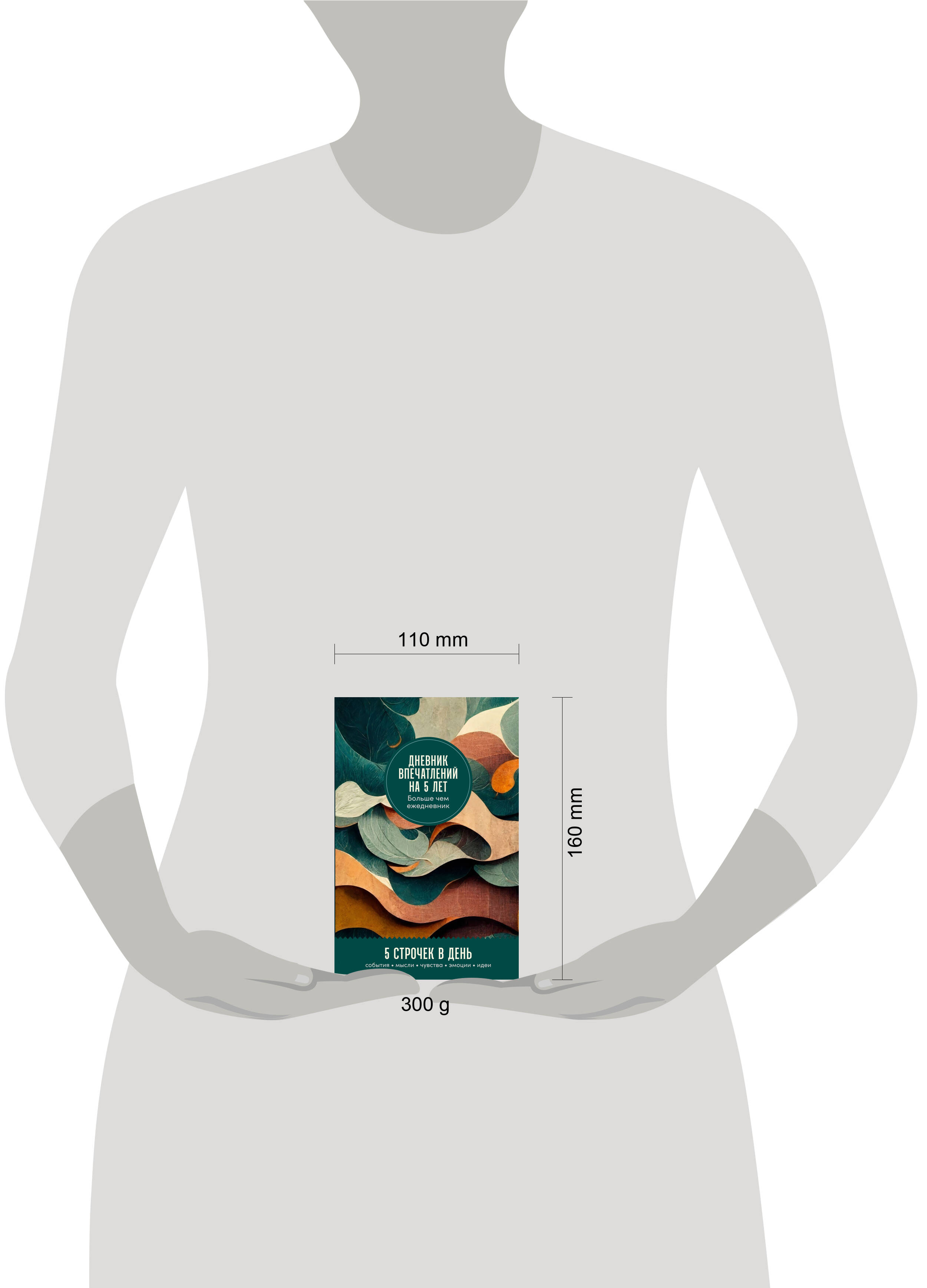 "Дневник впечатлений на 5 лет" создан для того, чтобы вы могли записывать что-то особенное о каждом дне. Хотите ли вы зафиксировать свои достижения, мысли, идеи или красоту момента, оставить на будущее важные размышления, заметить перемены и задуматься о главном - дневник идеально для этого подойдет. Каждая страница дневника - один календарный день. Начните с любой даты и просто делайте записи ежедневно в течение 5 лет. Возвращаясь к уже заполненным страницам, вы снова вспомните события, мысли и впечатления той же даты год, два, три, четыре, пять лет назад.