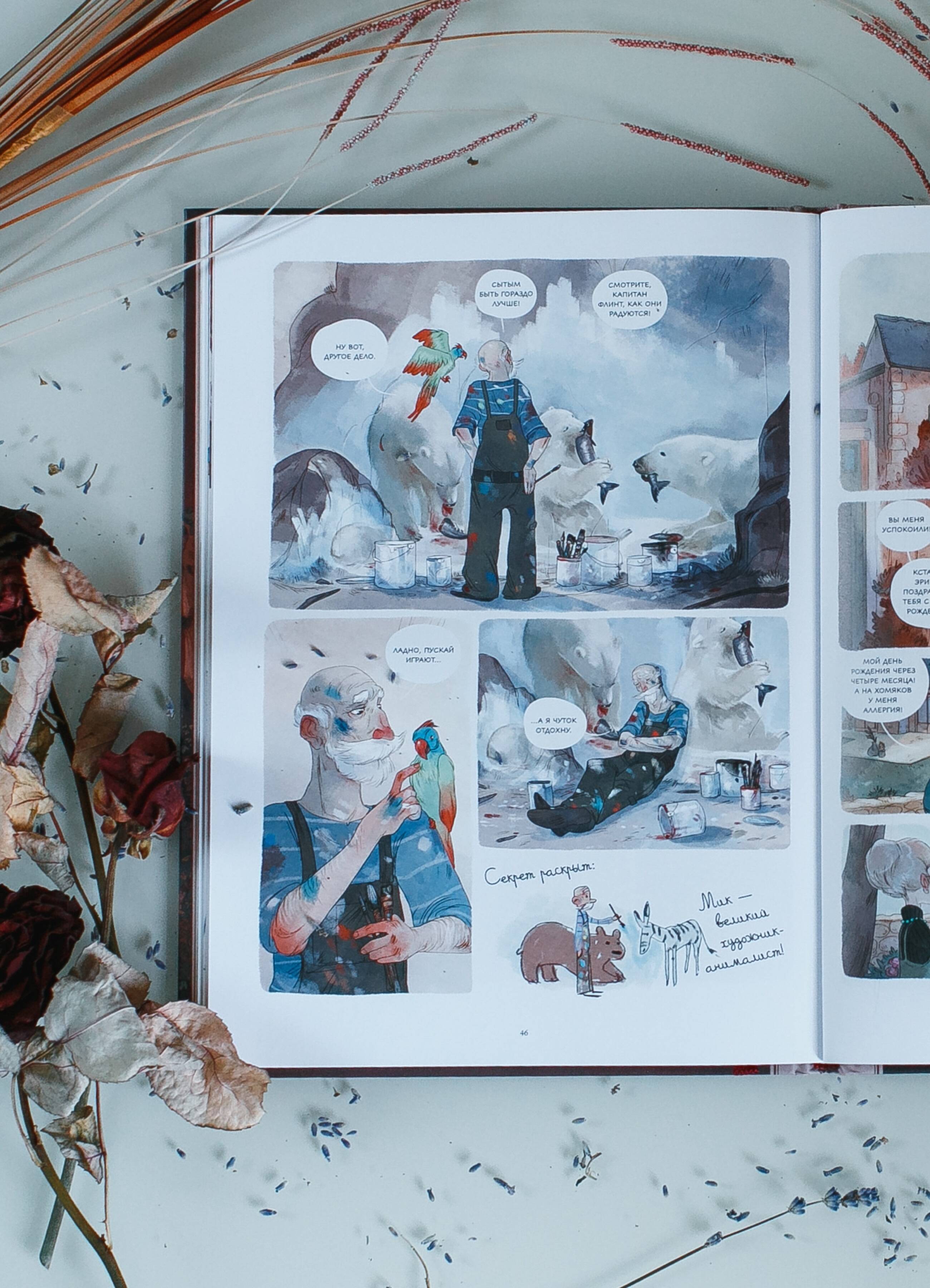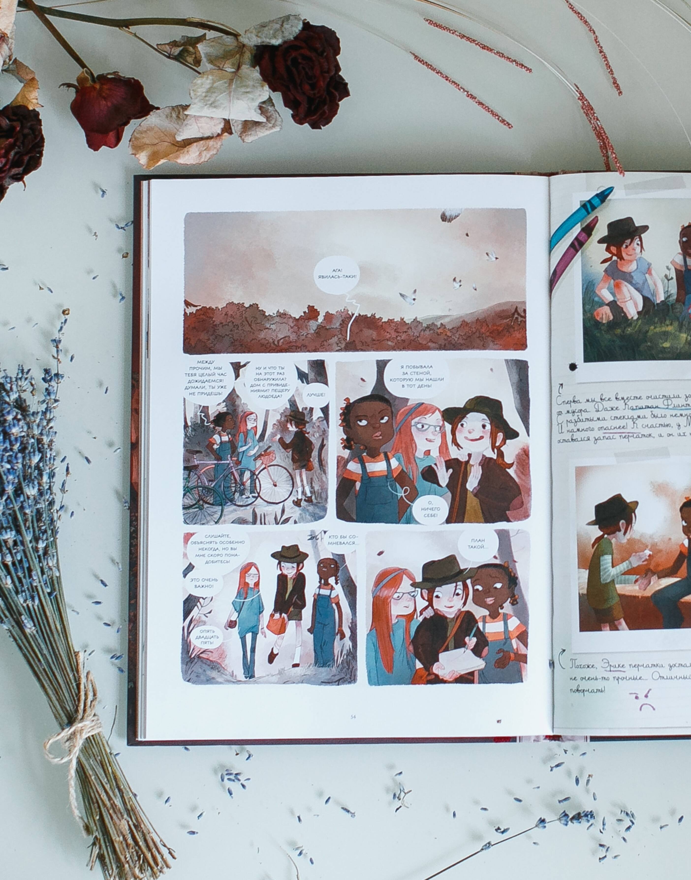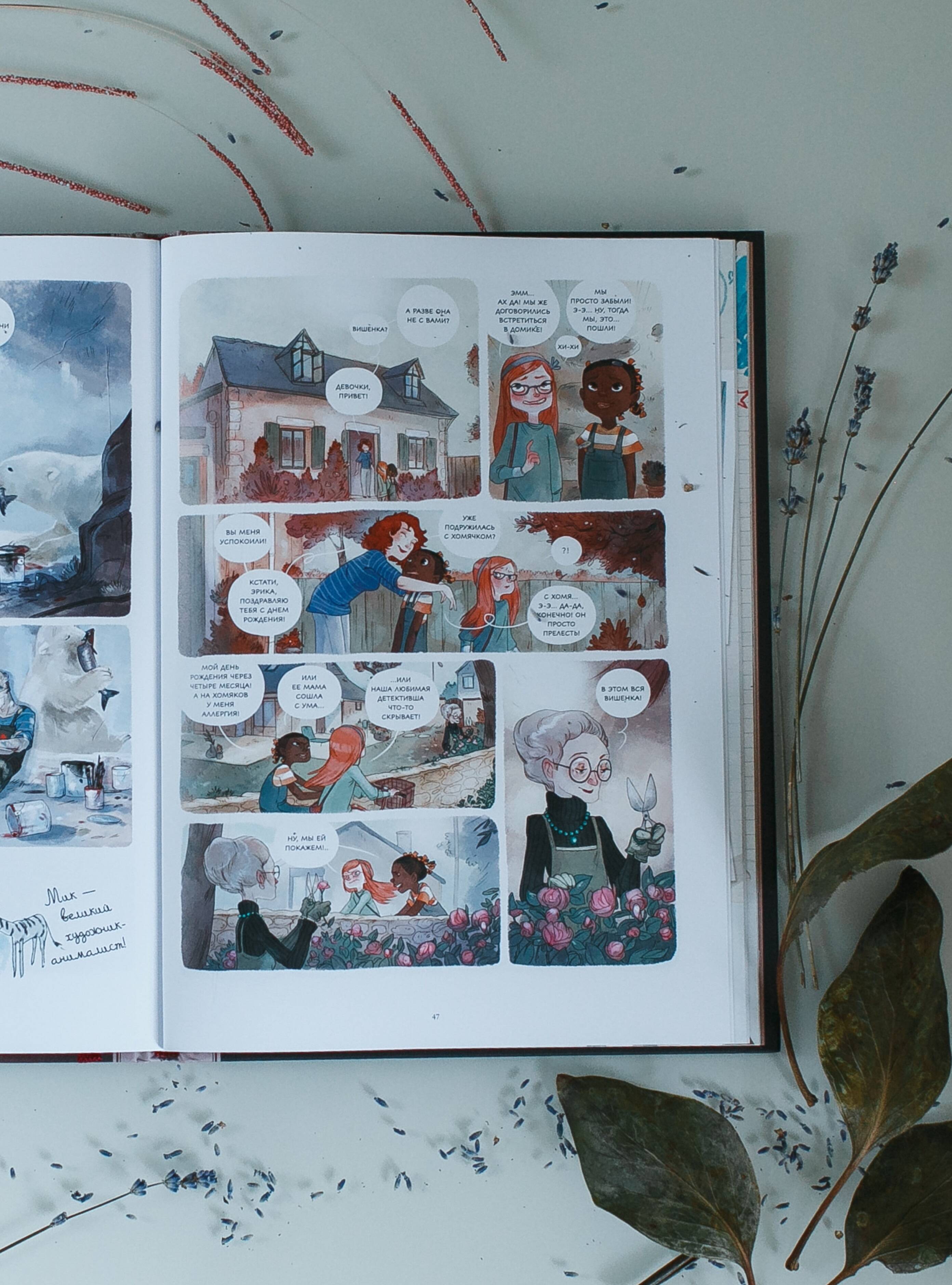 "Графический роман о девочке по кличке Вишенка. Вишенке 10 лет и она мечтает стать писателем, поэтому начинает вести дневник. Ведь писатель должен уметь выстраивать историю, собирать факты, брать интервью, а главное - наблюдать. Однажды, когда Вишенка вместе с подружками сидела в домике на дереве, они заметили в лесу старика с банками краски в руках. Кто это? Что он делает? И почему весь перепачкан в краске? С твердым намерением раскрыть эту тайну Вишенка начинает свое первое расследование. Книга для детей старше 8 лет."| Издательство | Манн, Иванов и Фербер |