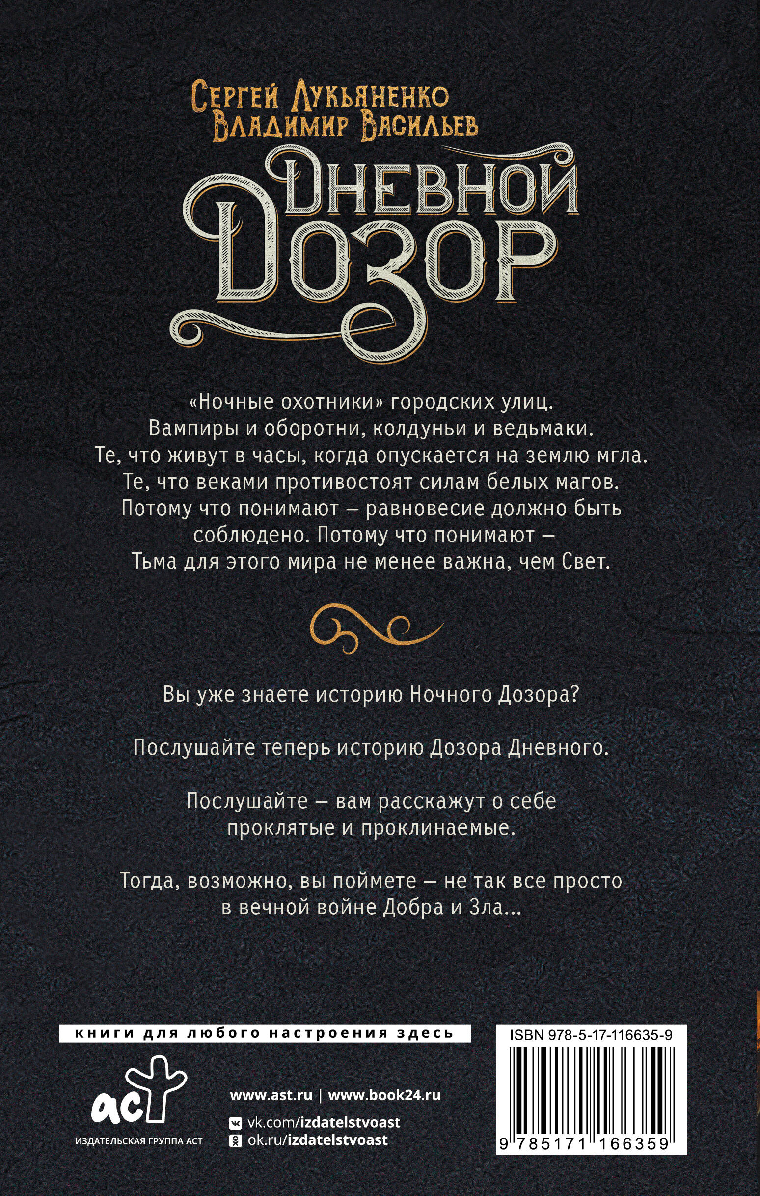 "Ночные охотники" городских улиц. Вампиры и оборотни, колдуньи и ведьмаки. Те, что живут в часы, когда опускается на землю мгла. Те, что веками противостоят силам белых магов. Потому что понимают - равно-весие должно быть соблюдено. Потому что понимают - Тьма для этого мира не менее важна, чем Свет. Вы уже знаете историю Ночного дозора? Послушайте теперь историю Дозора Дневного. Послушайте - вам расскажут о себе проклятые и проклинаемые. Тогда, возможно, вы поймете - не так все просто в вечной войне Добра и Зла…| Издательство | ИЗДАТЕЛЬСТВО "АСТ" |
