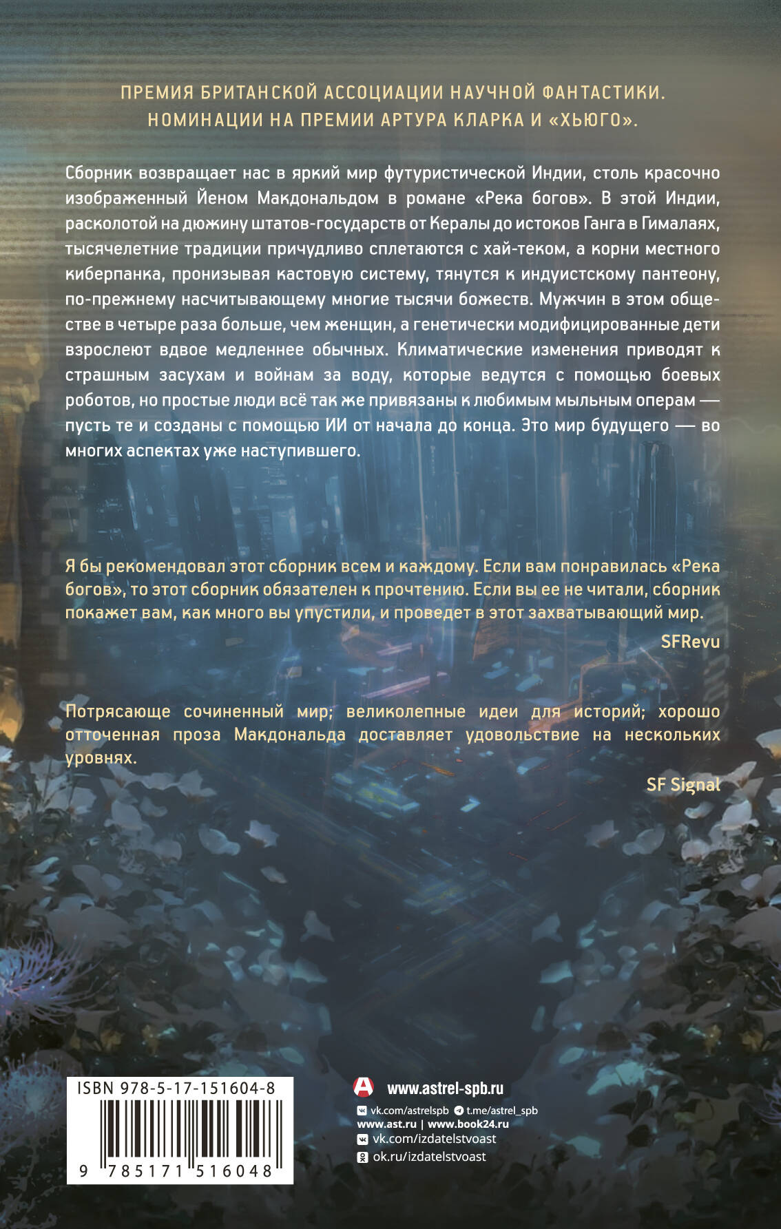 - «Дни Киберабада» - сборник рассказов от мастера научной фантастики Йена Макдональда, лауреата премий Хьюго и Британской Ассоциации Научной Фантастики. - Книга возвращает в мир футуристической Индии, впервые представленный в романе «Река богов» - это путешествие в мир, где индуистские божества соседствуют с боевыми роботами, а кастовая система адаптируется к эпохе искусственного интеллекта. - В сборнике Макдональд исследует влияние гендерного дисбаланса (мужчин в 4 раза больше, чем женщин) и генетических модификаций (дети взрослеют вдвое медленнее) на развитие общества. - В произведении также прослеживается экологическая проблематика: войны за воду между штатами‑государствами показывают, как климатические изменения могут перекроить политическую карту даже в эпоху высоких технологий. - Автор рисует будущее, во многих аспектах уже ставшее реальностью: климатические кризисы, социальное неравенство и ИИ‑индустрия развлечений заставляют задуматься о существующих трендах и их долгосрочных последствиях. - Издание входит в серию «Звезды научной фантастики»: твердый переплет, офсетная бумага, продуманное атмосферное оформление.| Издательство | Издательство "АСТ" |