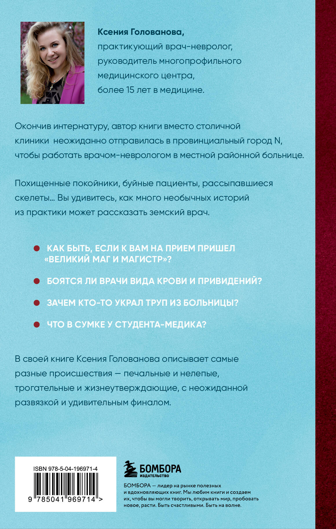 Непридуманные невероятные истории, комедии и драмы, похищенные трупы, неожиданные повороты в историях пациентов - все это в книге врача, который после вуза отдал предпочтение сельскому ФАПу вместо теплого места в столице.| Издательство | ООО "Издательство "Эксмо" |