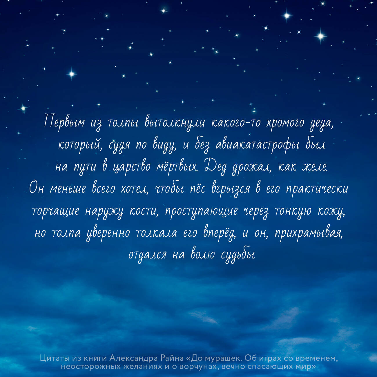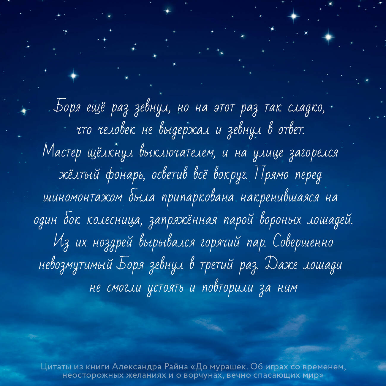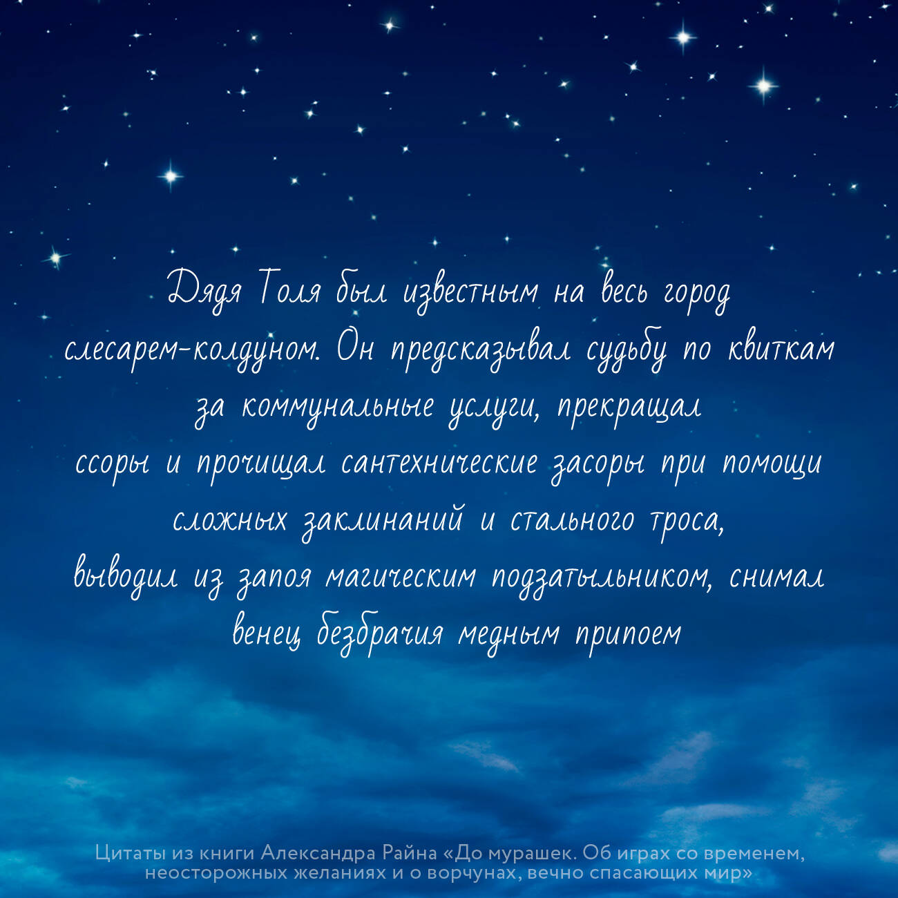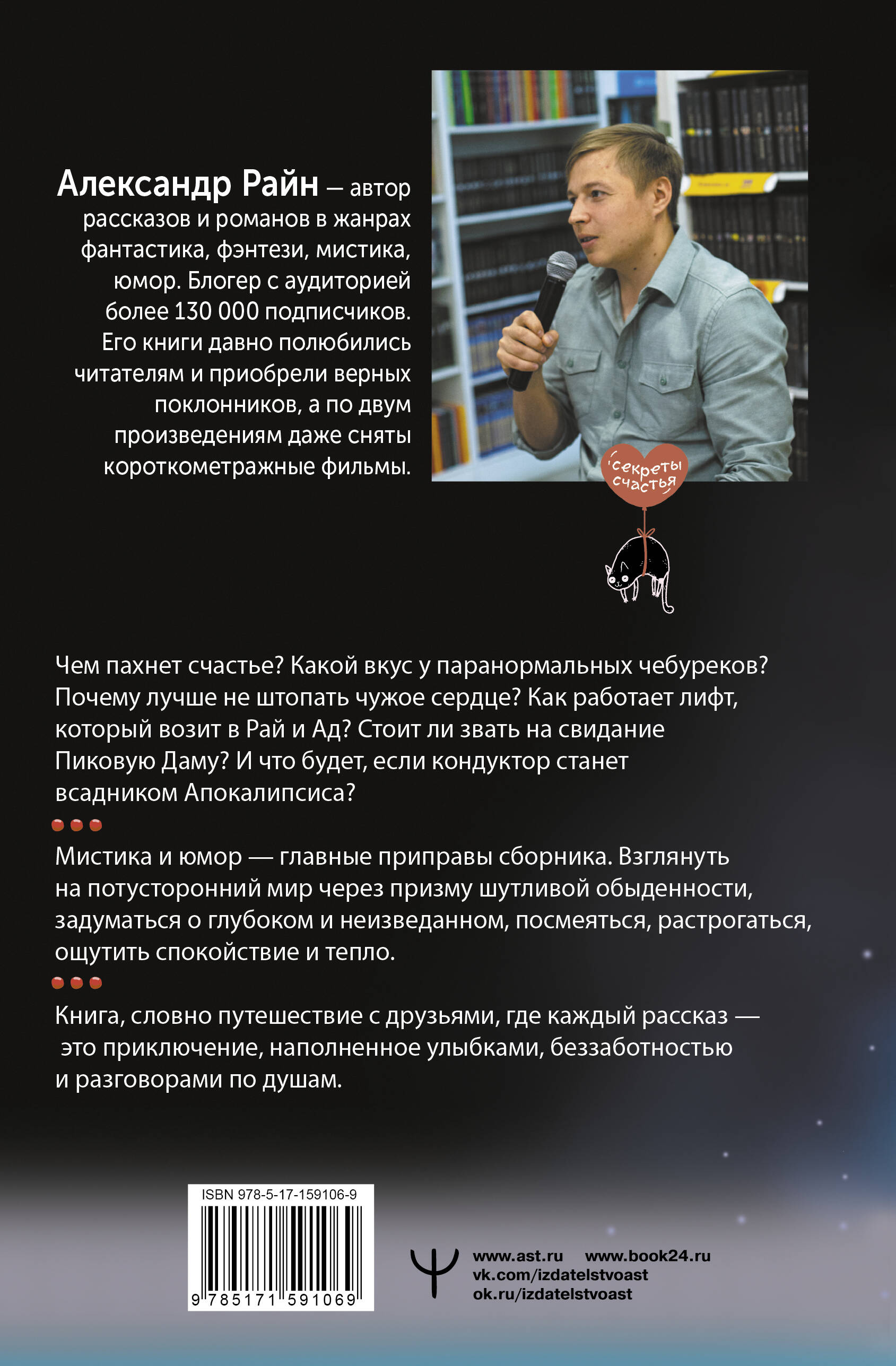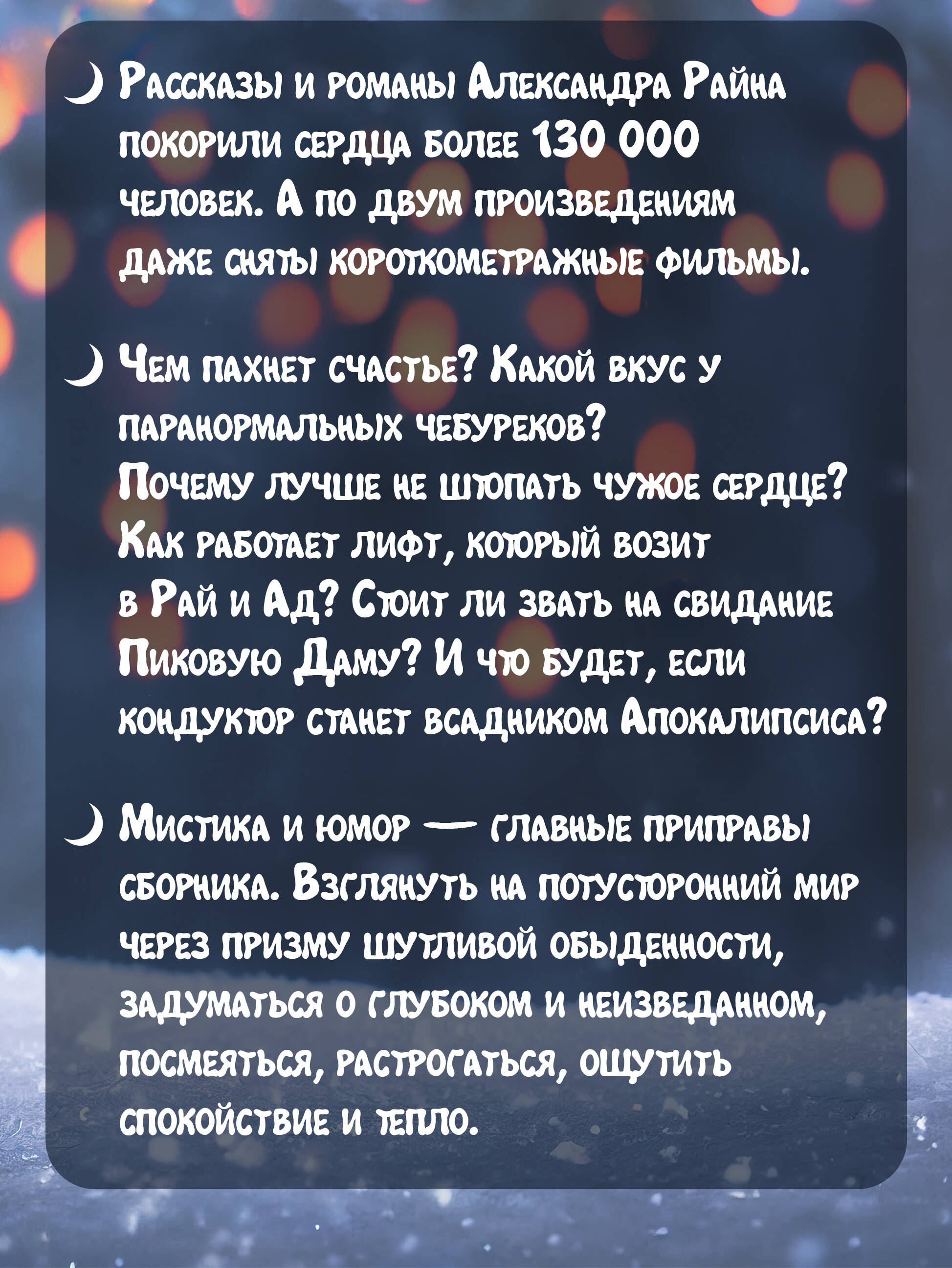 В ваших руках новая книга мастера юмористической прозы Александра Райна «До мурашек. Об играх со временем, неосторожных желаниях и о ворчунах, вечно спасающих мир». Александр Райн - автор бестселлера «Душевный разговор» и популярного канала на Дзене; рассказы Александра полюбились тысячам читателей, а его постоянная аудитория составляет 130 тысяч подписчиков. В сборнике «До мурашек» Александр Райн приправляет свой искрометный юмор нотками мистики - очень милой и уютной. Автор призывает читателей вместе пофантазировать - что было бы, если… • среди ангелов смерти попадались неудачники; • Харон, переправляющий души через реку Стикс, завел собаку; • человек, устанавливающий теплицы, вдруг стал подрабатывать экстрасенсом; • скромный кондуктор превратился во всадника Апокалипсиса; • в доме завелся призрак, который сделает вам ремонт. Вместе с героями рассказов Александра Райна вы будете удивляться, радоваться, немного пугаться и даже чуть-чуть грустить, но, главное - задумаетесь о том, как работают законы кармы, что происходит с душами после того, как они покидают физическую оболочку, и какие силы порой следят за нашими поступками и решениями.| Издательство | Издательство "АСТ" |