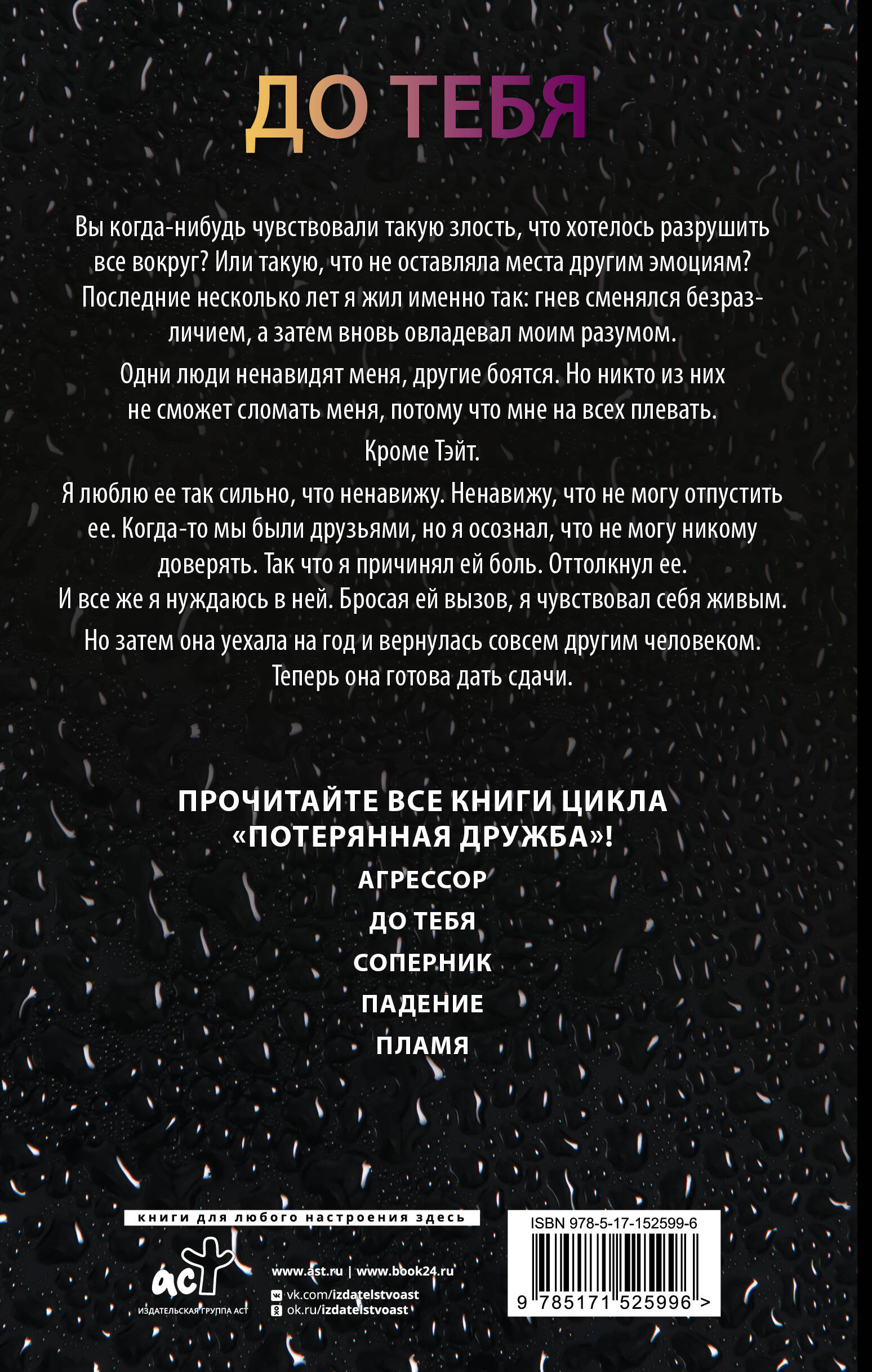От автора бестселлеров по версии New York Times, USA Today и Wall Street Journal. Вторая книга цикла The Fall Away. Продолжение романа «Агрессор». Вы уже знаете историю Тейт. А теперь прочтите версию Джареда. Взрывная романтическая серия Пенелопы Дуглас переизобретает понятия того, что значит влюбиться по уши. Роман «До тебя» выходит в двух вариантах оформления.| Издательство | ИЗДАТЕЛЬСТВО "АСТ" |