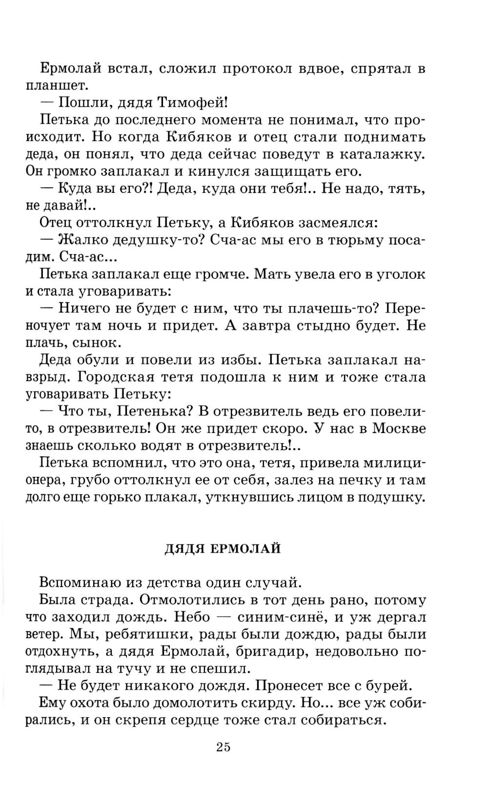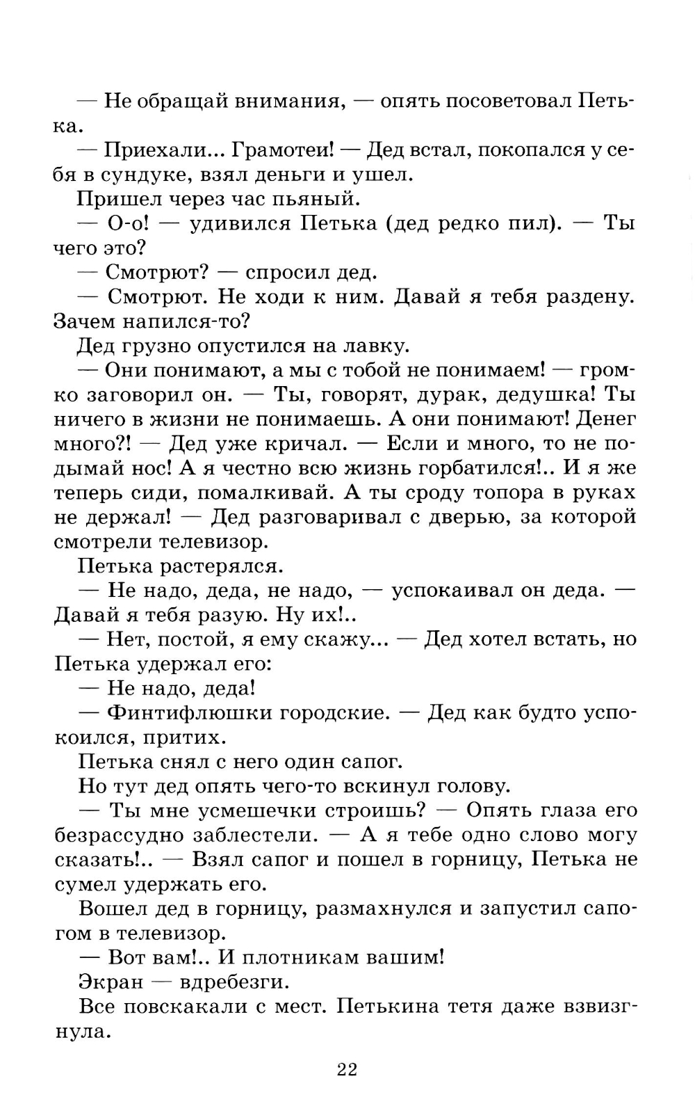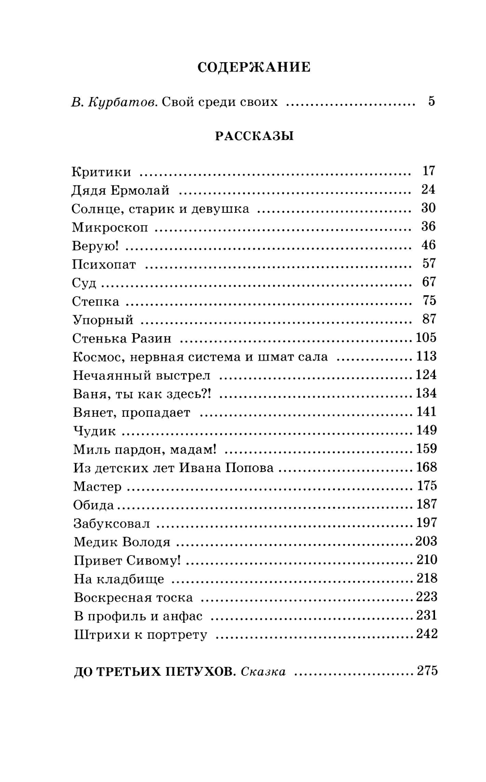 В сборник известного писателя, сценариста, режиссера и актера Василия Макаровича Шукшина вошли философская сказка про Ивана-дурака, который ходил за тридевять земель набираться ума-разума, «До третьих петухов» и более двадцати рассказов о русской деревне, тяжелой судьбе и нелегком быте сельчан: « Дядя Ермолай», «Верую!», «Упорный», «Забуксовал» и другие. Часть этих произведений изучается в рамках школьной программы по литературе. Для старшего школьного возраста.| Издательство | Детская литература |