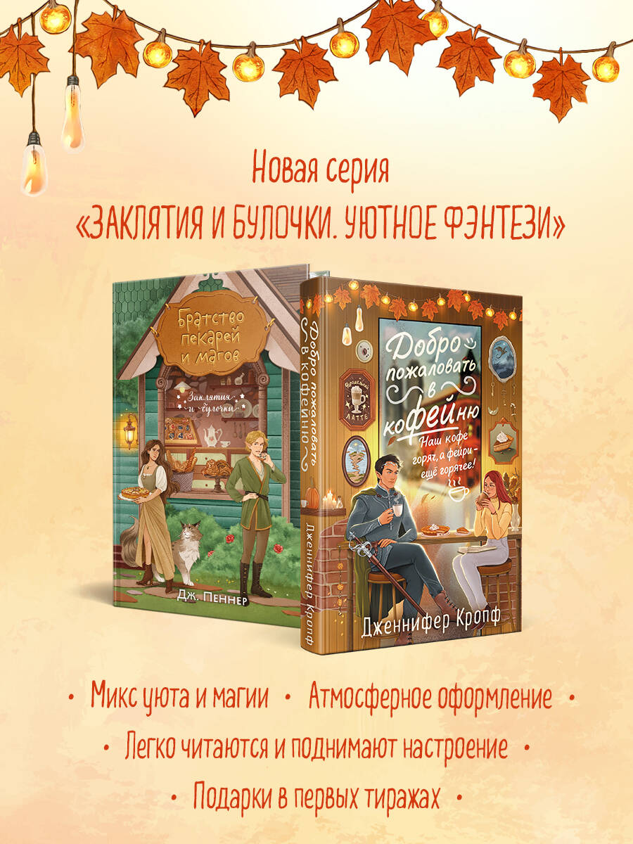 Уютным осенним утром Кейт Коул случайно убила человека. Как выяснилось чуть позже, даже не человека, а фейри-ассасина. Четверо фейри во главе с прекрасным и опасным принцем Севера поклялись отомстить, - но их охота на Кейт пошла наперекосяк, когда девушка ненароком приворожила принца и узнала истинные имена остальных. Теперь смертоносные убийцы подчиняются человеческой девчонке - и помогают ей открыть свою кофейню! А ещё пекут печенье, читают ромэнтези в книжном клубе и скрывают всё это от своей коварной королевы, которая не согласна с таким положением вещей… Уютное фэнтези с кофе, осенней атмосферой и привлекательными фейри! История для поклонников «Ассистентки Злодея» Ханны Николь Мерер. Первая книга цикла, который объединяет разные истории в авторском мире. Обретённая семья, юмор, настоящие чувства и искренние эмоции под красивейшей обложкой от художницы DAFNA. Открытка от популярной художницы SIMART - во всём первом тираже!| Издательство | ООО "Издательство "Эксмо" |