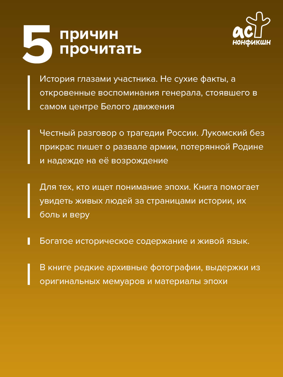 Александр Сергеевич Лукомский - один из самых ярких и противоречивых военачальников Белого движения. Участник Первой мировой войны, ближайший соратник генерала А. И. Деникина, он стал свидетелем величайших потрясений, пережитых Россией в начале XX века. В своих мемуарах Лукомский откровенно пишет о развале армии, рождении Добровольческой армии, борьбе с большевиками и трудных решениях, стоявших перед командованием Белого движения. Сквозь все испытания его вела одна неизменная идея - вера в Единую и Неделимую Россию. Эта книга - живое свидетельство гражданской смуты, наполненное драмой, честью и болью утраченной Родины.| Издательство | Издательство "АСТ" |