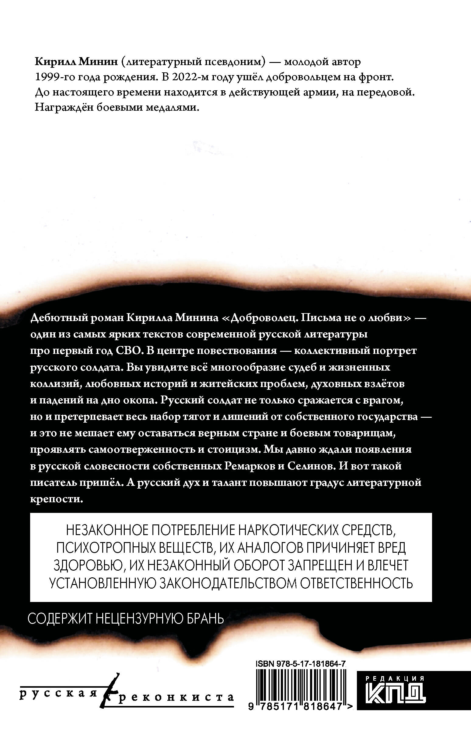 - На страницах романа - откровенный рассказ добровольца, пошедшего на войну по зову сердца, а не по приказу. - История первой любви, оставшейся под мирным небом - как единственный светлый противовес ужасу войны. - Книга, в которой жизнь и смерть, любовь и война существуют как два неразрывных полюса одного пути.| Издательство | Издательство "АСТ" |