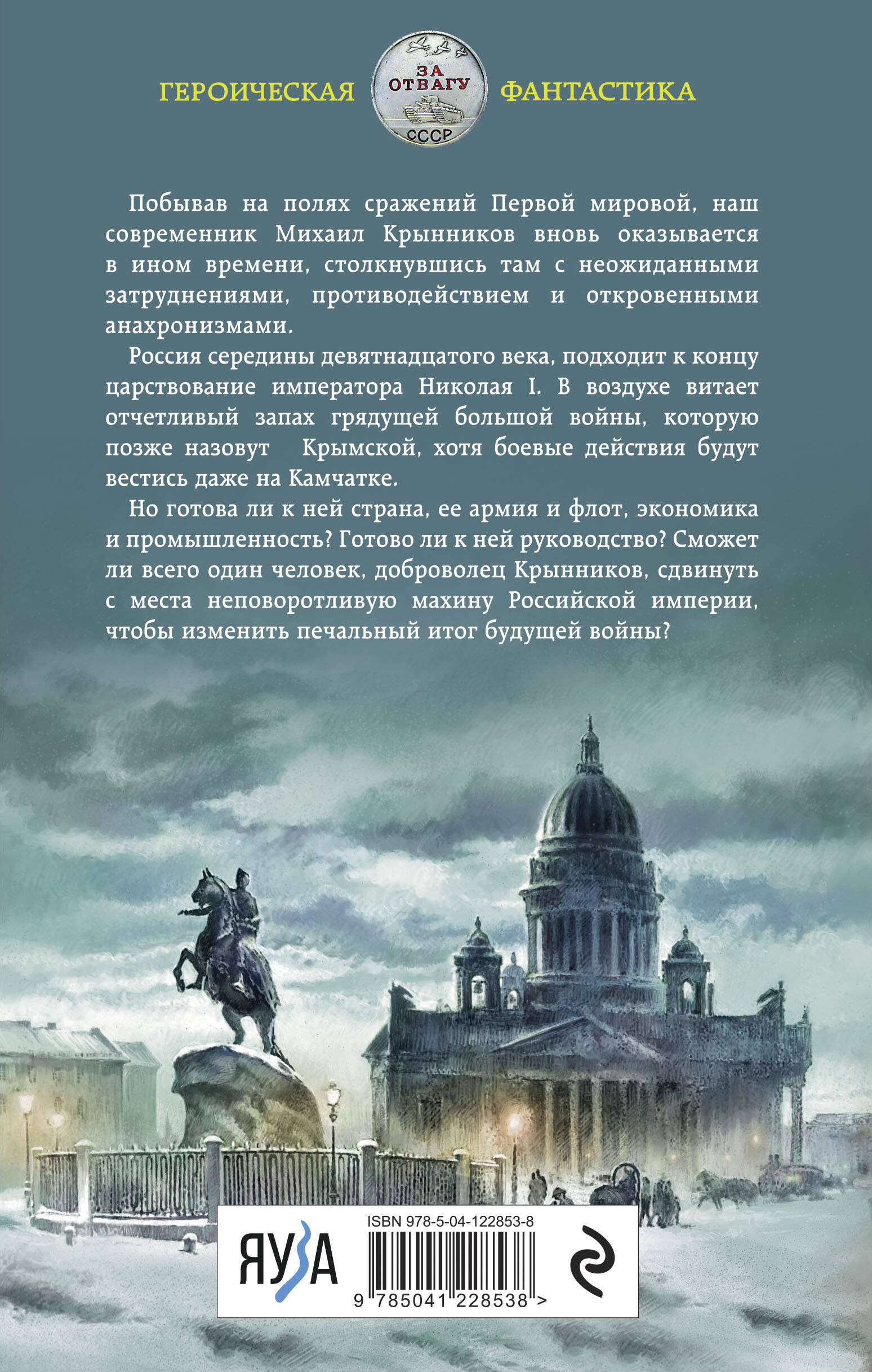 Наш современник попадает в середину XIX века и пытается подготовить Россию к Крымской войне. Продолжение романа «Доброволец. На великой войне». Побывав на полях сражений Первой мировой, наш современник Михаил Крынников вновь оказывается в ином времени, столкнувшись там с неожиданными затруднениями, противодействием и откровенными анахронизмами. Россия середины девятнадцатого века, подходит к концу царствование императора Николая I. В воздухе витает отчетливый запах грядущей большой войны, которую позже назовут «Крымской», хотя боевые действия будут вестись даже на Камчатке. Но готова ли к ней страна, ее армия и флот, экономика и промышленность? Готово ли к ней руководство? Сможет ли всего один человек, доброволец Крынников, сдвинуть с места неповоротливую махину Российской империи, чтобы изменить печальный итог будущей войны?| Издательство | ООО "Издательство "Эксмо" |
