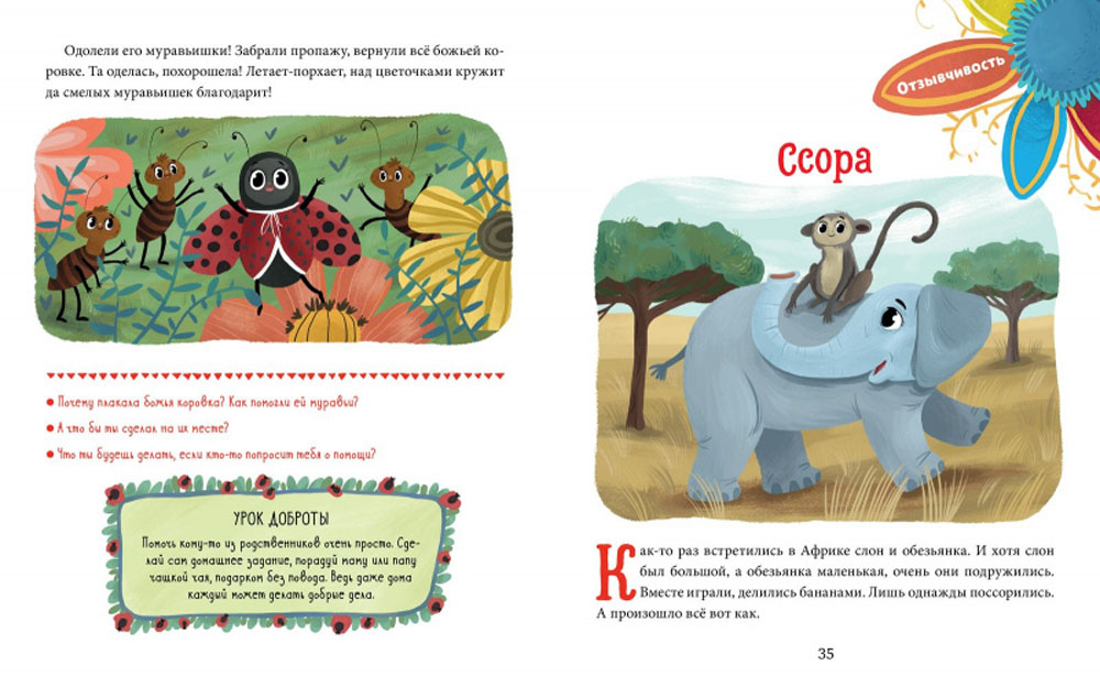 Книга «Добрые дела» познакомит с проявлением дружелюбия, честности, отзывчивости, щедрости, совестливости, благородства, счастья и любви.