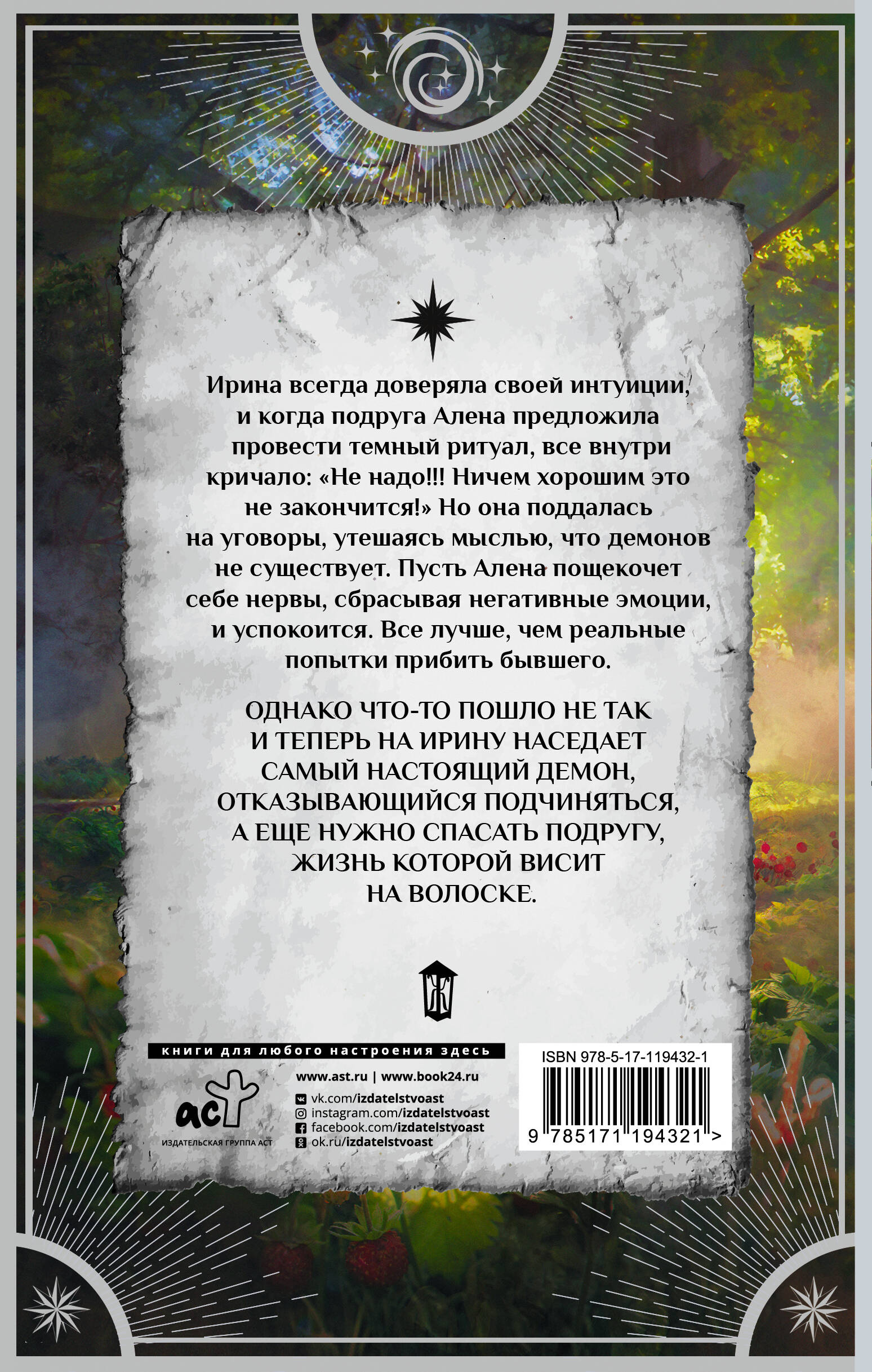 Ирина всегда доверяла своей интуиции, и когда подруга Алена предложила провести темный ритуал, все внутри кричало: "Не надо!!! Ничем хорошим это не закончится!" Но она поддалась на уговоры, утешаясь мыслью, что демонов не существует. Пусть Алена пощекочет себе нервы, сбрасывая негативные эмоции, и успокоится. Все лучше, чем реальные попытки прибить бывшего. Однако что-то пошло не так, и теперь на Ирину наседает самый настоящий демон, отказывающийся подчиняться, а еще нужно спасать подругу, жизнь которой висит на волоске.| Издательство | Издательство "АСТ" |