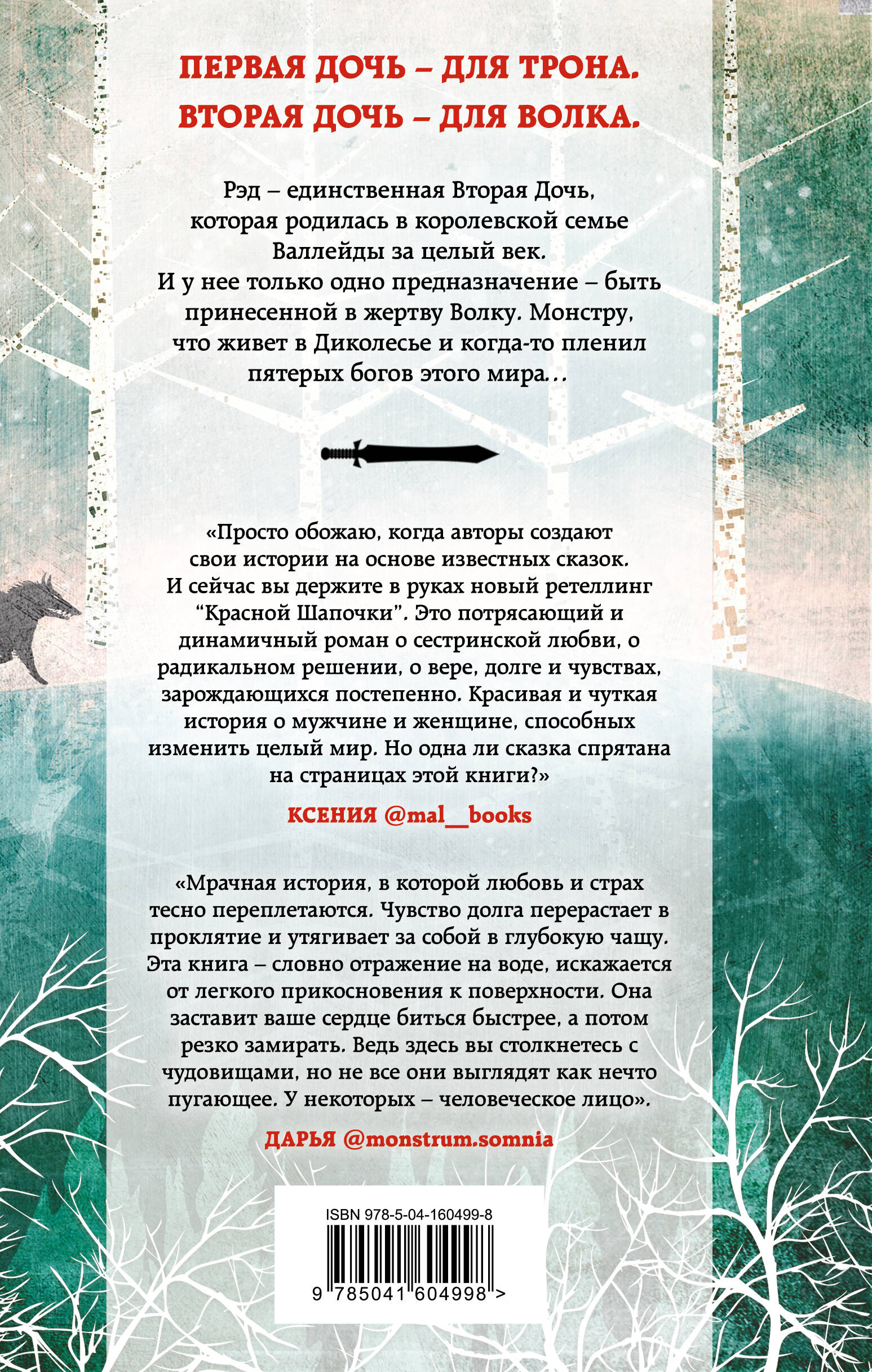 Рэд - единственная Вторая Дочь, которая родилась в королевской семье Валлейды за целый век. И у нее только одно предназначение - быть принесенной в жертву Волку. Монстру, что живет в Диколесье и когда-то пленил пятерых богов этого мира. Для самой Рэд такой исход - почти избавление. Ведь внутри нее живет опасная сила, которую невозможно контролировать. Быть может, в Диколесье девушка не сможет вновь причинить зло тем, кого любит. Но легенды лгут. Волк - не монстр, а человек. Магия Рэд - ее призвание, а не проклятие. И если девушка не узнает, как ее использовать, истинные монстры поглотят Диколесье… а с ним и весь мир. Сказочный ретеллинг для поклонников Мариссы Мейер, Кристины Генри и Наоми Новик! История Красной Шапочки, какой вы её ещё не видели + мрачная версия «Красавицы и Чудовища». Книга стала бестселлером New York Times немедленно после выхода. Невероятная атмосфера, яркая любовная линия, запоминающиеся персонажи - всё, что мы любим в сказках.| Издательство | ООО "Издательство "Эксмо" |