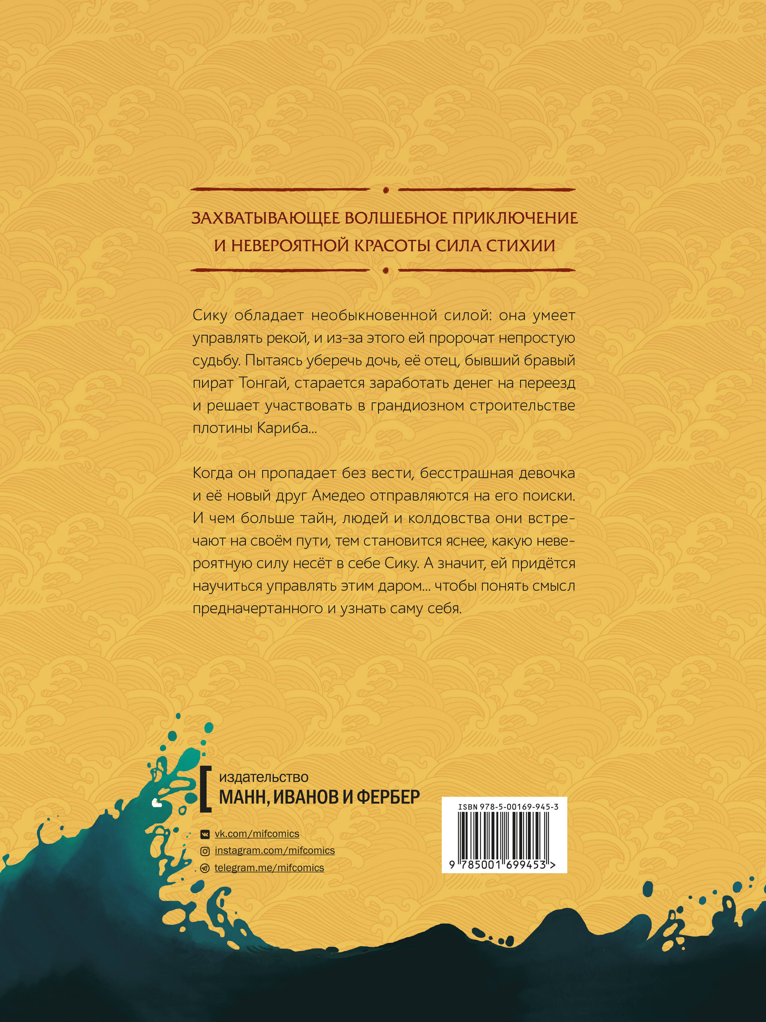 Сику обладает необыкновенной силой: она умеет управлять рекой, и из-за этого ей пророчат непростую судьбу. Пытаясь уберечь дочь, её отец, бывший бравый пират Тонгай, старается заработать денег на переезд и решает участвовать в грандиозном строительстве плотины Кариба… Когда он пропадает без вести, бесстрашная девочка и её новый друг Амедео отправляются на его поиски. И чем больше тайн, людей и колдовства они встречают на своём пути, тем становится яснее, какую невероятную силу несёт в себе Сику. А значит, ей придётся научиться управлять этим даром... чтобы понять смысл предначертанного и узнать саму себя.| Издательство | МАНН, ИВАНОВ И ФЕРБЕР ООО |