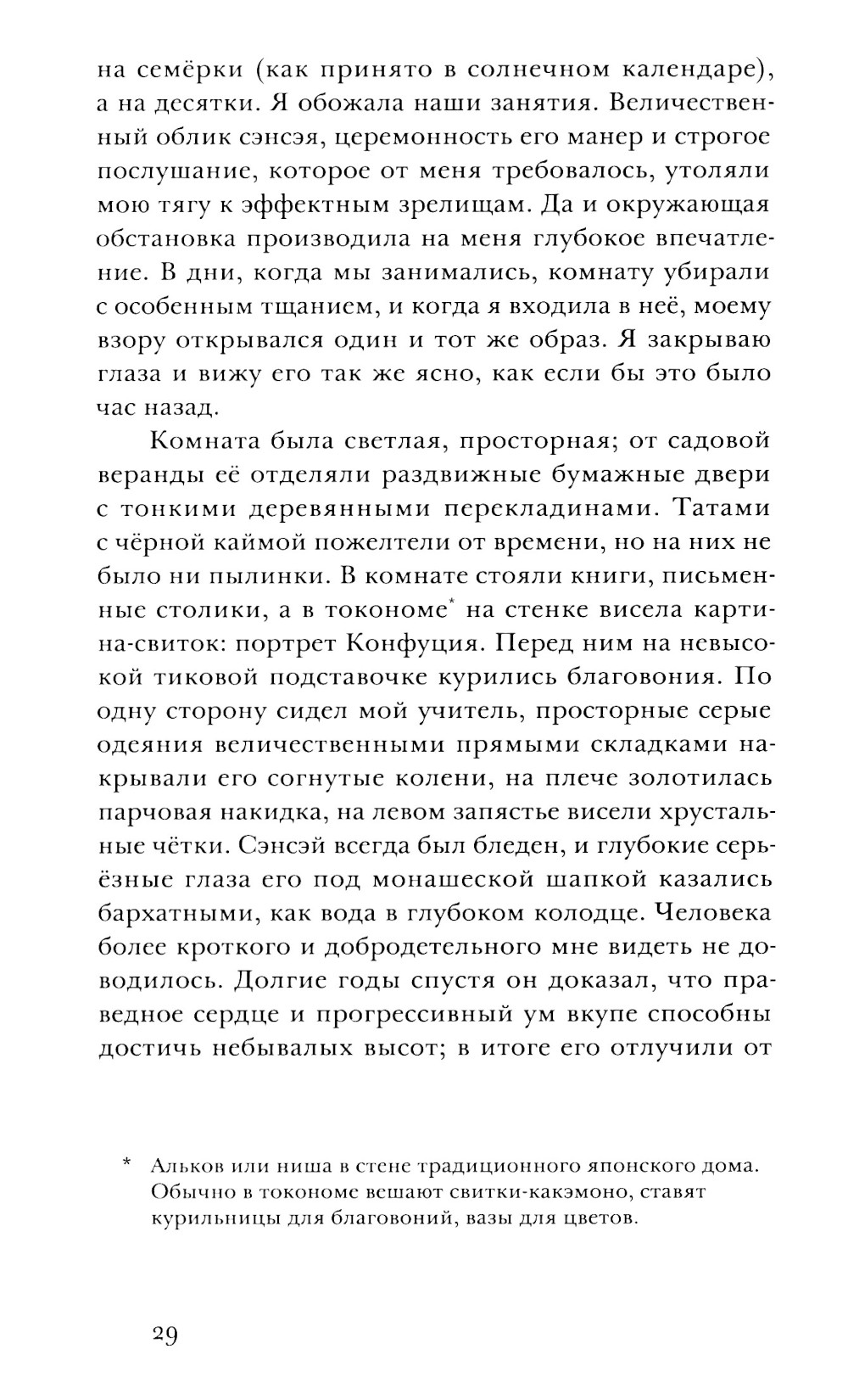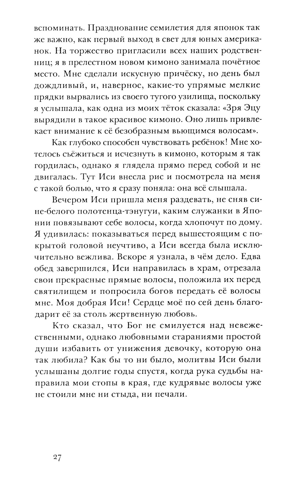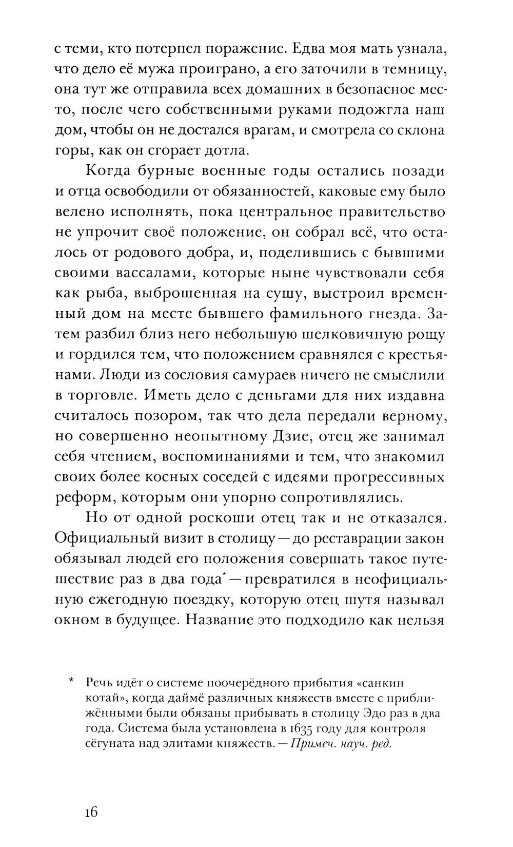 Детство Эцуко, родившейся в семье высокопоставленного самурая и воспитанной в традициях феодальной Японии, подчинено строгим ритуалам, а ее будущее определено заранее. Но стремительно приближающийся XX век нарушает казавшийся незыблемым уклад, чаяния семьи Инагаки терпят крах - и вот Эцу уже сосватана за японского торговца, живущего в Огайо. Юной девушке, не знающей английского языка и американской культуры, предстоит совершить долгий путь в другую часть света, суметь сохранить себя в чужой стране и стать по-настоящему счастливой, научившись сочетать японскую верность долгу с американской открытостью новому. Автобиографический роман о столкновении двух культур в одной необыкновенной судьбе продолжает совместную серию переводов Яндекс Книг и «Подписных изданий».| Издательство | Подписные издания |
