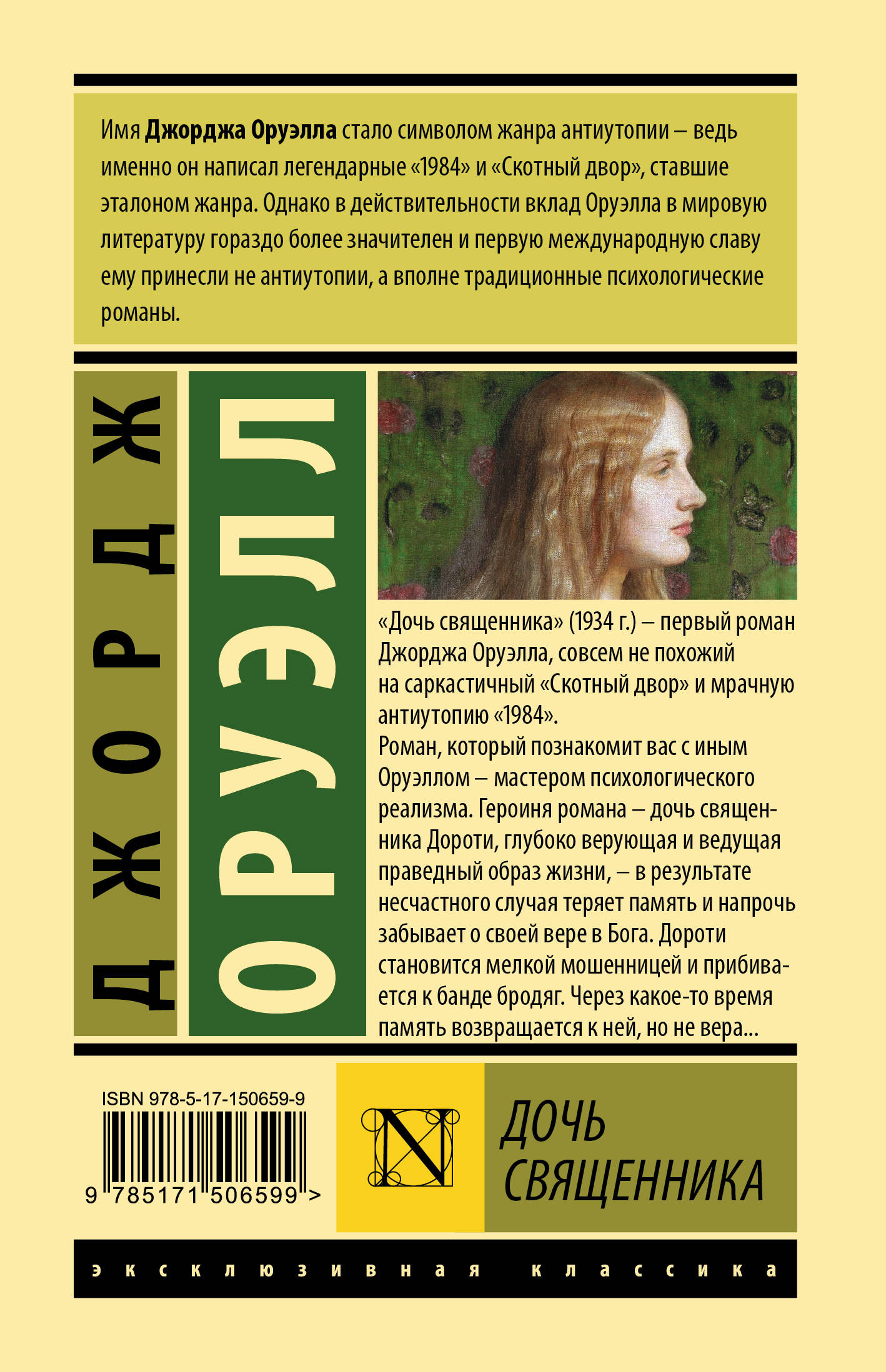 От автора культовых произведений «1984» и «Скотный двор». Джордж Оруэлл продолжает оставаться одним из самых значимых и остроактуальных авторов современности, а его книги каждый год лидируют в топах продаж. Совершенно непохожая на саркастичный «Скотный двор» и мрачную антиутопию «1984», «Дочь священника» откроет вам Оруэлла с совершенно новой стороны - как мастера психологического реализма.