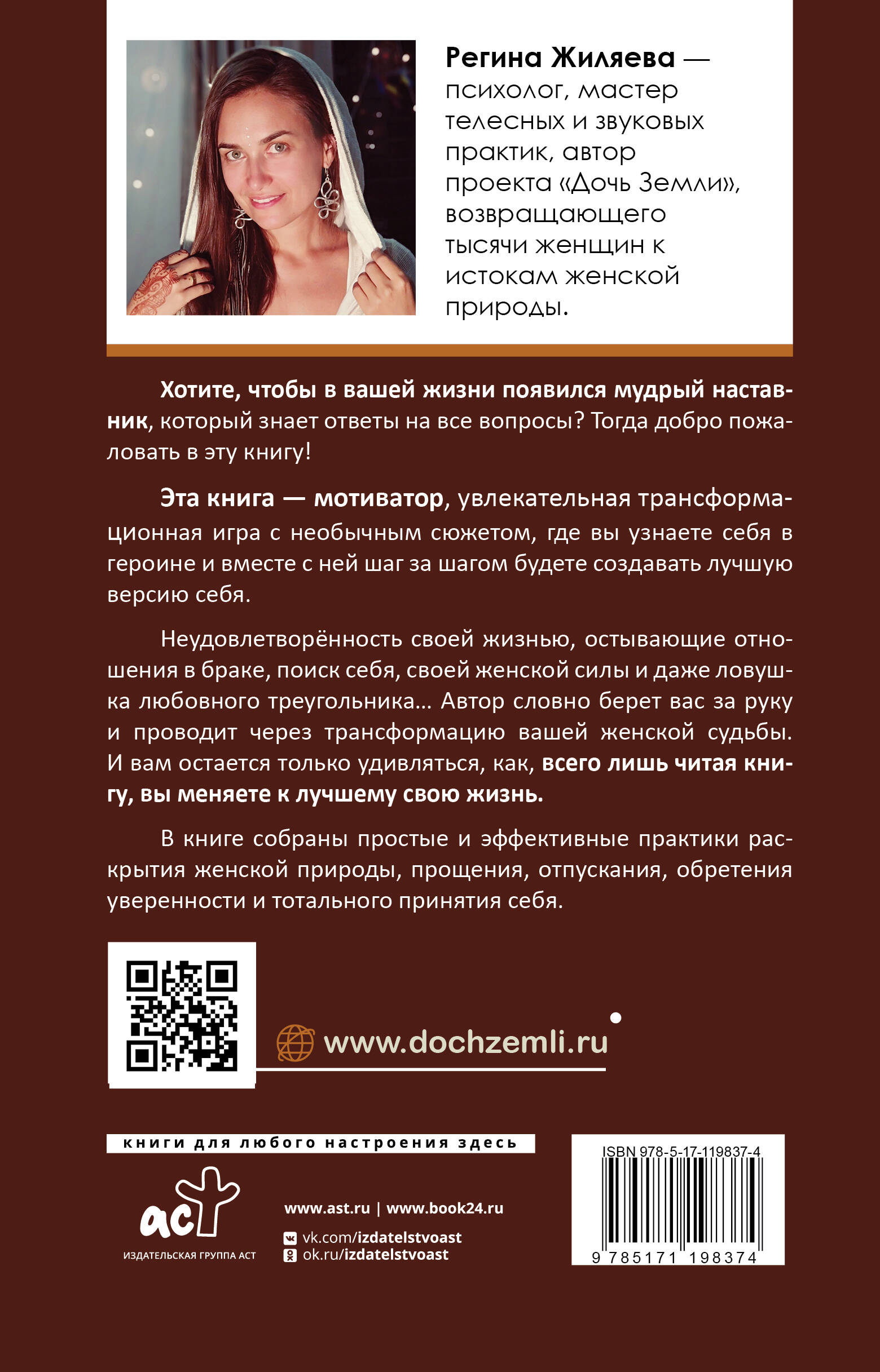 Регина Жиляева - психолог, мастер телесных и звуковых практик, автор проекта «Дочь Земли», возвращающего тысячи женщин к истокам женской природы. Эта книга адресована женщинам. Рассказывая историю внутренней трансформации героини, Регина Жиляева говорит читательницам: «С вами уже все хорошо, вы уже достойны, уже достаточны и уже любимы!» Наше тело - сосуд наших чувств. Тело хранит весь жизненный опыт. И только наполнив себя, женщина будет готова нести любовь дальше. Земля дает корни, без корней не будет плодов. Важно прочувствовать свою ценность и осознать: ты и есть любовь.| Издательство | ИЗДАТЕЛЬСТВО "АСТ" |