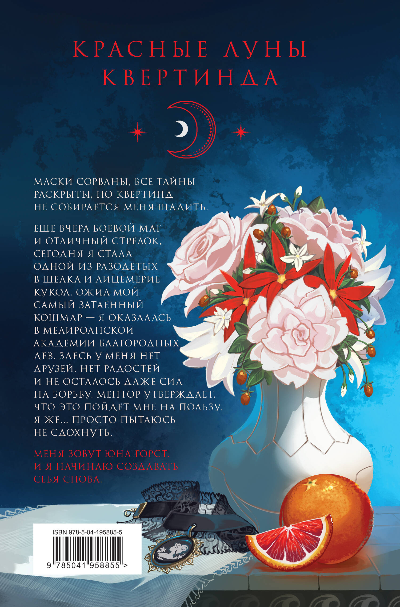 Маски сорваны, все тайны раскрыты, но Квертинд не собирается меня щадить. Еще вчера боевой маг и отличный стрелок, сегодня я стала одной из разодетых в шелка и лицемерие кукол. Ожил мой самый затаенный кошмар - я оказалась в Мелироанской академии благородных дев. Здесь у меня нет друзей, нет радостей, и не осталось даже сил на борьбу. Ментор утверждает, что это пойдет мне на пользу. Я же... просто пытаюсь не сдохнуть. Меня зовут Юна Горст. И я начинаю создавать себя снова. Четвертая часть популярного цикла «Красные луны Квертинда» Нины Малкиной. Продолжение истории про дерзкую Юну Горст и ее стремление к свободе. Романы цикла охватывают огромный, продуманный до мелочей авторский мир Нины Малкиной и раскрывают невероятные образы и характеры героев. На страницах романа-новинки развивается история главной героини - Юны Горст. Она не только раскрывается как персонаж, но также сомневается и совершает ошибки, после ища способы их решения. Корешки книг образуют единый рисунок, который может стать украшением любой книжной коллекции.| Издательство | ООО "Издательство "Эксмо" |