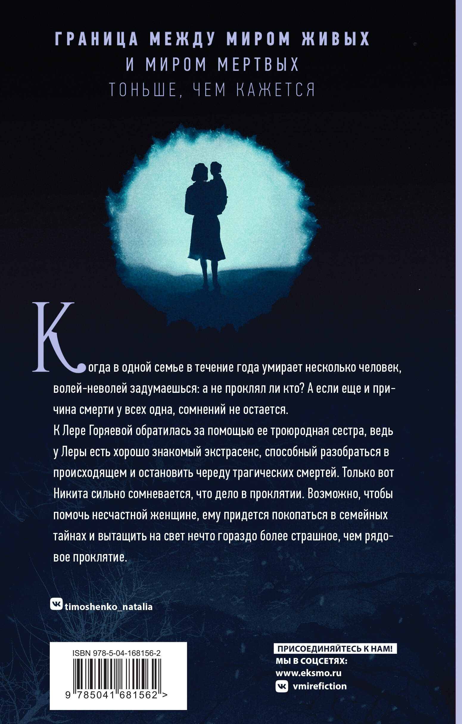 Прошлое раскрывает тайны. Когда в одной семье в течение года умирают несколько человек, волей-неволей задумаешься: а не проклял ли кто? А если еще и причина смерти у всех одна, сомнений не остается. К Лере Горяевой обратилась за помощью ее троюродная сестра, ведь у Леры есть хорошо знакомый экстрасенс, способный разобраться в происходящем и остановить череду трагических смертей. Только вот Никита сильно сомневается, что дело в проклятии. Возможно, чтобы помочь несчастной женщине, ему придется покопаться в семейных тайнах и вытащить на свет нечто гораздо более страшное, чем рядовое проклятие. Захватывающее детективное фэнтези, увлекающее с первой страницы. Романы Натальи Тимошенко пропитаны мистикой и тайной. В них оживают лесные чудовища, посланники из мира мертвых и старые добрые домовые.| Издательство | Эксмо |