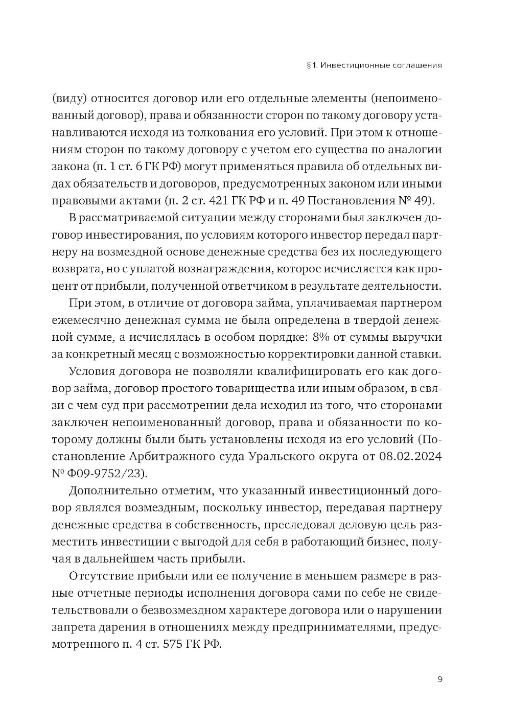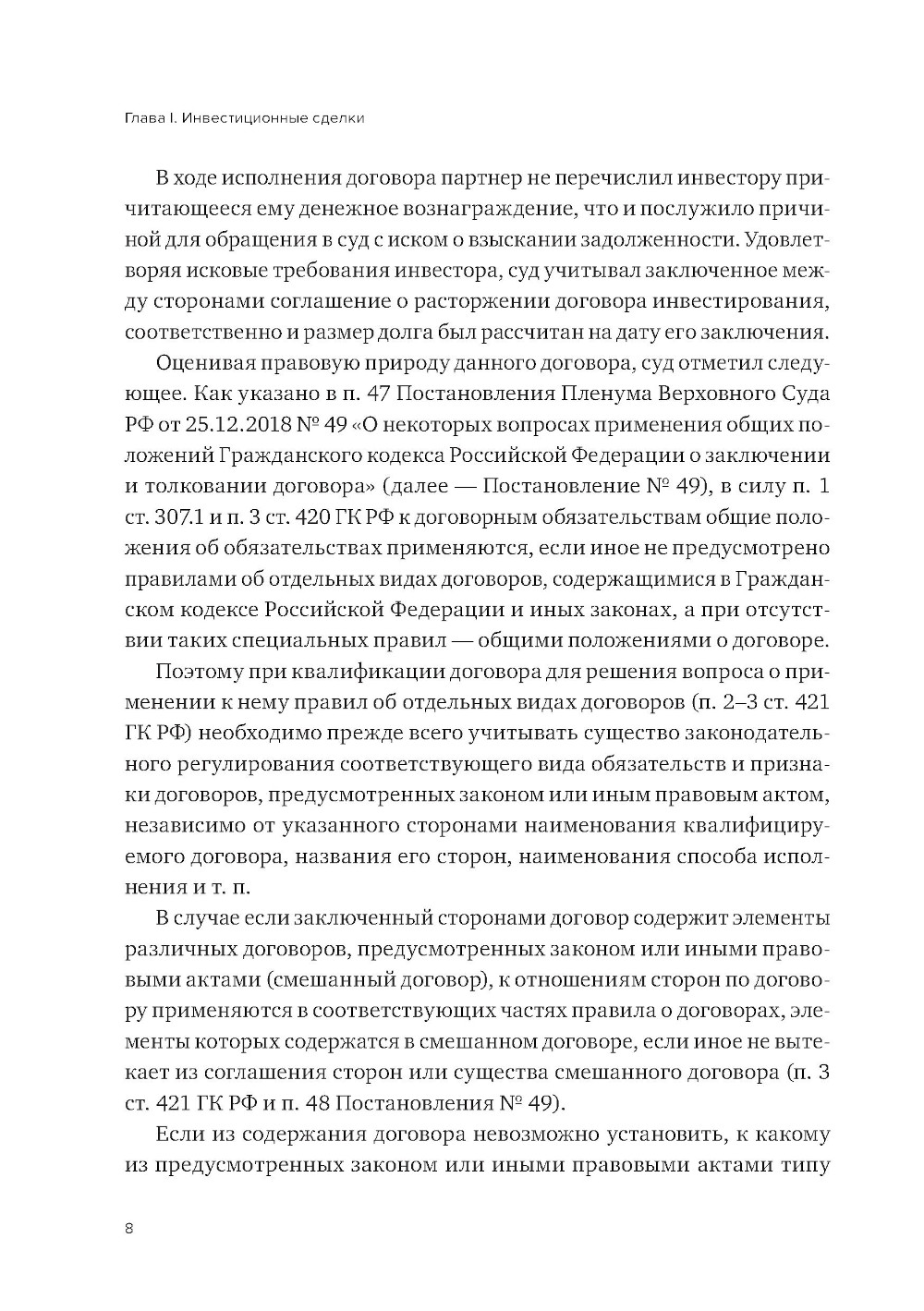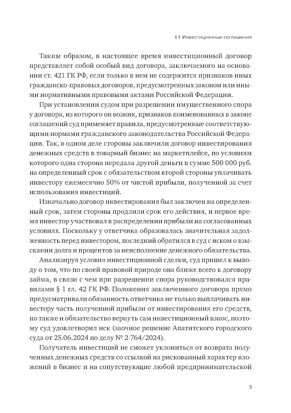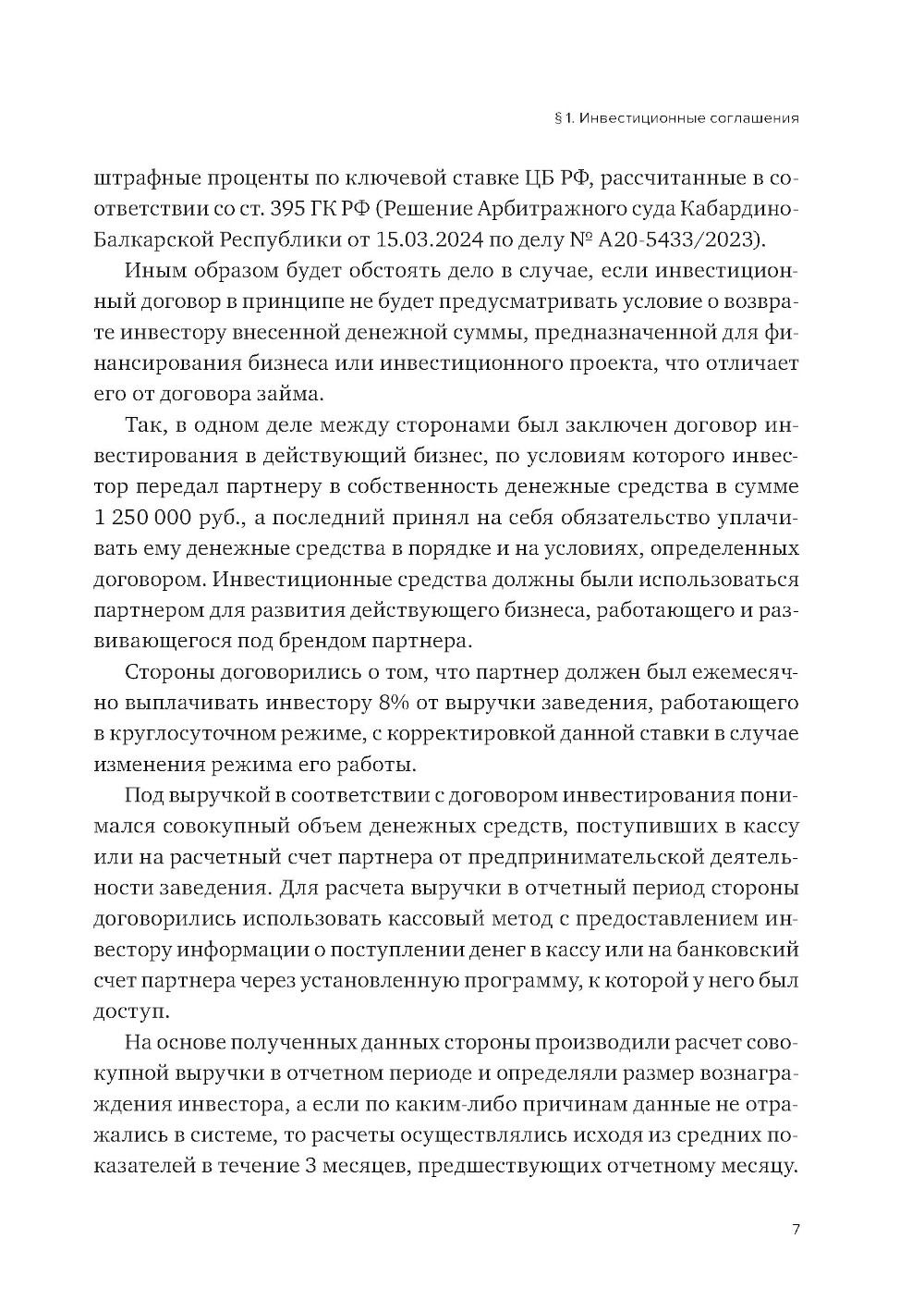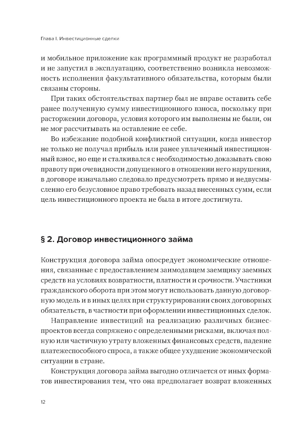 Создание коммерческой организации с наделением ее уставным капиталом и иными активами является одним из самых популярных, но при этом далеко не единственных способов структурирования бизнеса. Для создания организационно-правовых основ для ведения своей будущей предпринимательской деятельности участники гражданского оборота могут использовать различные гражданско-правовые договоры из существующего арсенала имеющихся в их распоряжении договорных моделей. В каждом конкретном случае с учетом отраслевой специфики, размера инвестиций, деловых связей, вида и масштаба планируемой коммерческой деятельности, своих экономических потребностей, а также иных заслуживающих внимания обстоятельств коммерсанты могут выбирать наиболее подходящие для них договорные образцы. В настоящей книге с опорой на законодательный материал и обширную судебную практику мы решили проанализировать наиболее популярные и при этом, разумеется, не единственные договорные конструкции, при помощи которых может быть подготовлен к запуску тот или иной бизнес-проект. К числу таких гражданско-правовых договоров мы отнесли различные инвестиционные сделки (инвестиционные соглашения, договор инвестиционного займа и договор аренды с инвестиционными обязательствами), агентирование, франчайзинг, договор купли-продажи готового бизнеса, а также договор простого товарищества (о совместной деятельности), включая оценку специфики данной договорной модели, налоговые аспекты, антимонопольные запреты и ограничения, связанные с его применением. Настоящая книга, как и все остальные наши практические исследования, может оказаться полезной для предпринимателей, юристов, экономистов и специалистов иного профиля, сталкивающихся с необходимостью реализации и сопровождения различного рода бизнес-проектов.| Издательство | Инфотропик Медиа |