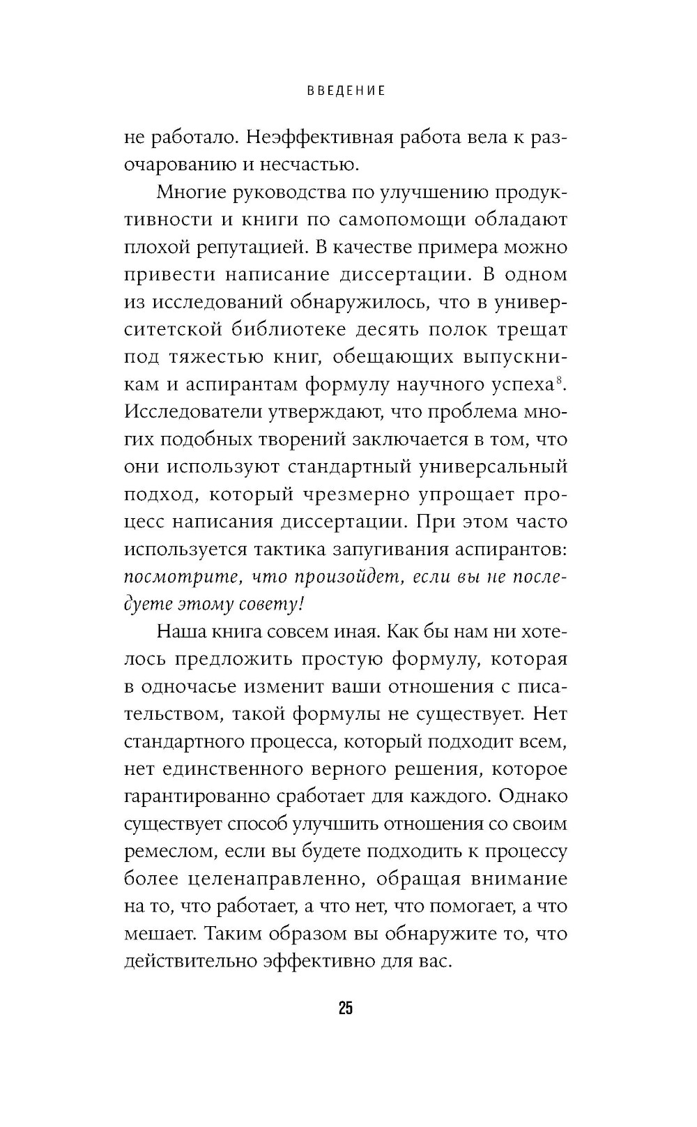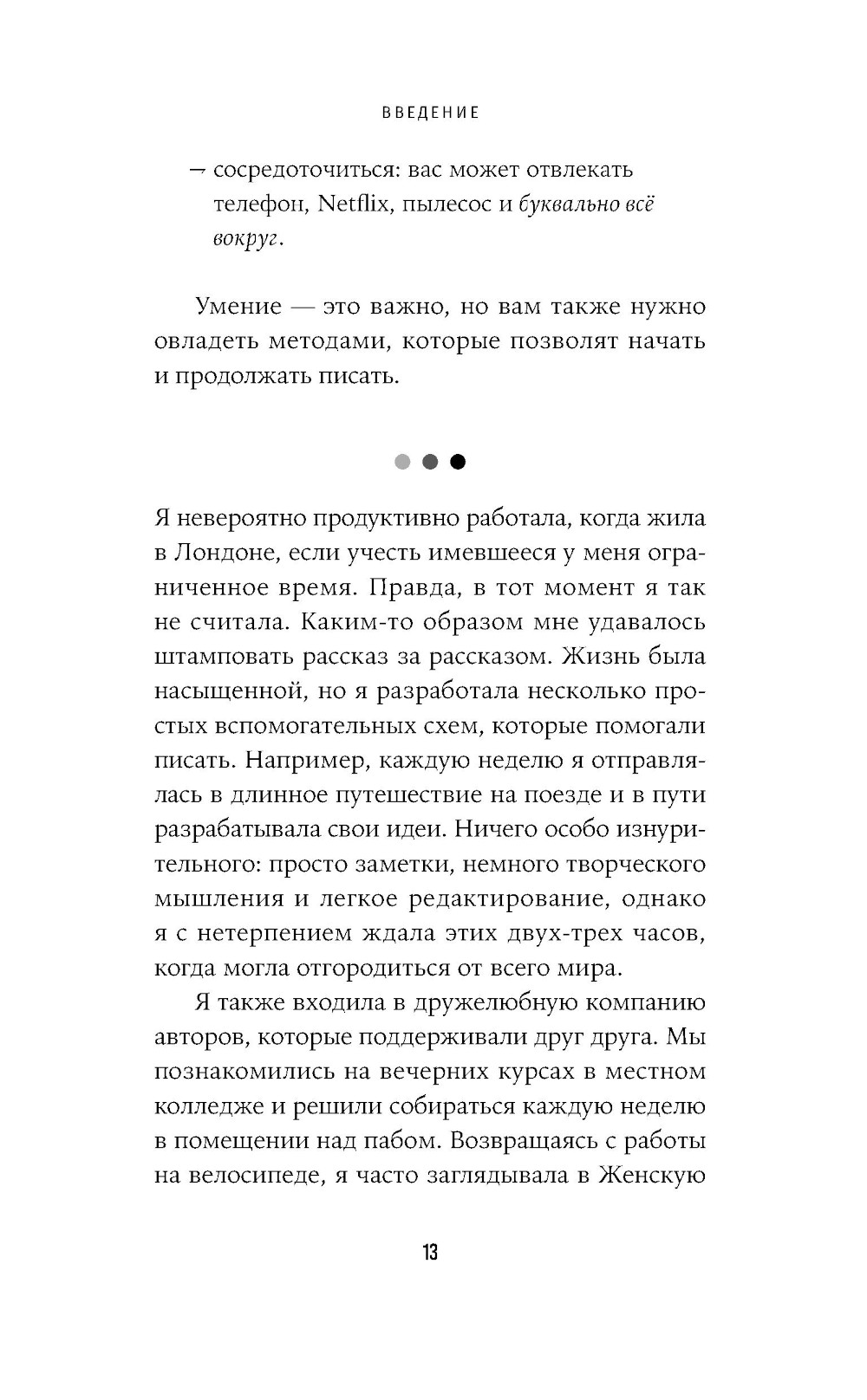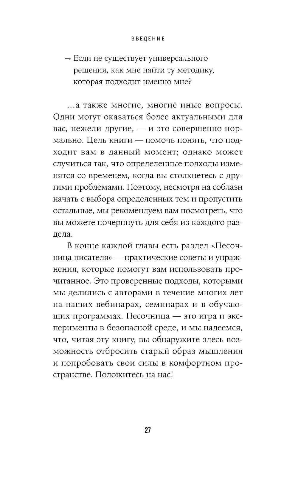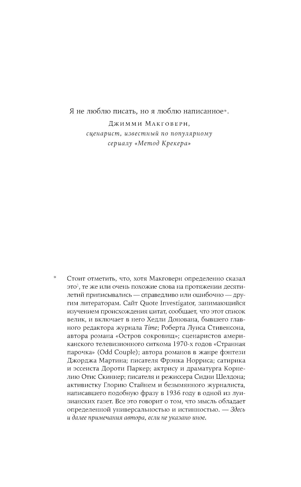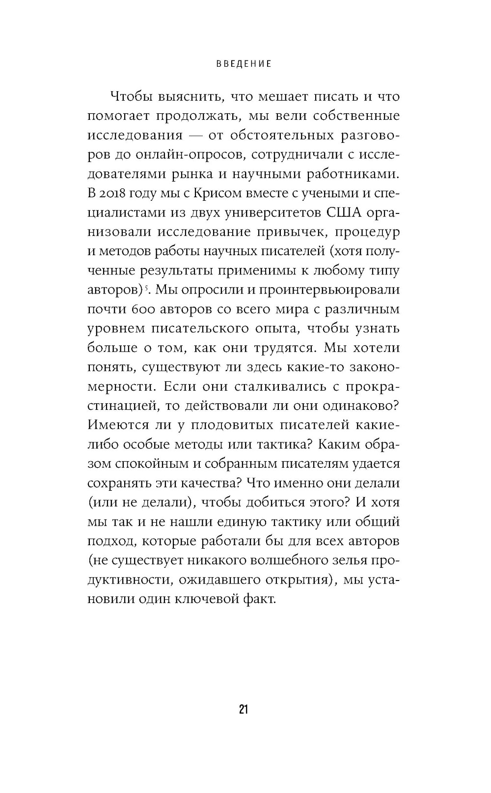 Эта книга - результат десятилетних поисков и экспериментов - помогает выработать полезные и продуктивные привычки, необходимые любому пишущему человеку. Кому-то писательство нужно для карьеры или учебы, кому-то - для творческой реализации, но зачастую сесть и начать работать над текстом оказывается совсем не просто. Авторы этой книги знают, что нужно делать, чтобы перестать откладывать литературный труд на потом и преодолеть все препятствия. Свой подход, опробованный на сотнях успешных авторов, они превратили в действенную методику, которая детально изложена в книге. Книга не учит, как писать талантливо и интересно, но дает инструменты, необходимые, чтобы начать работу, не бросить ее на полпути и дать читателям возможность по достоинству оценить ваше литературное мастерство.| Издательство | Альпина нон-фикшн |