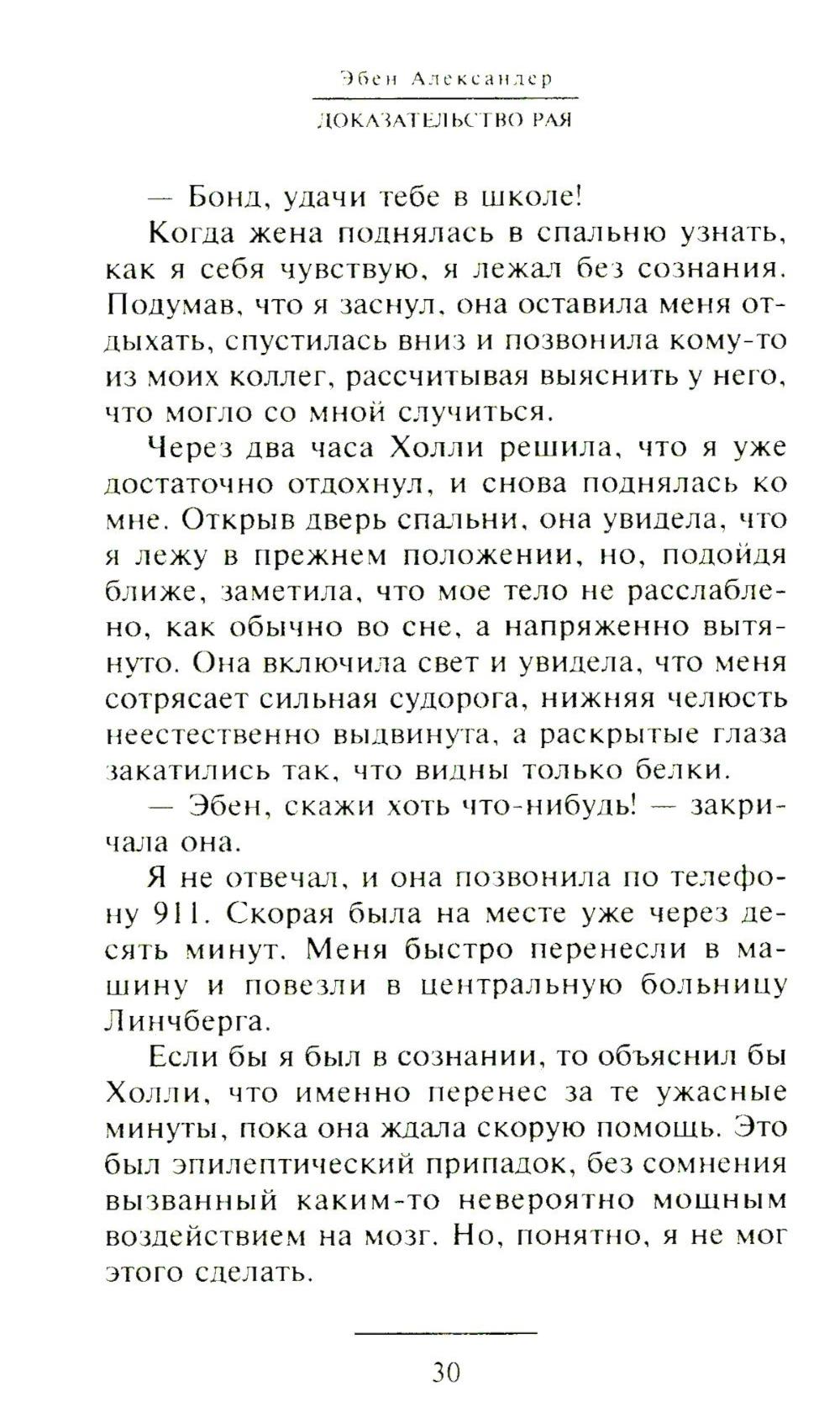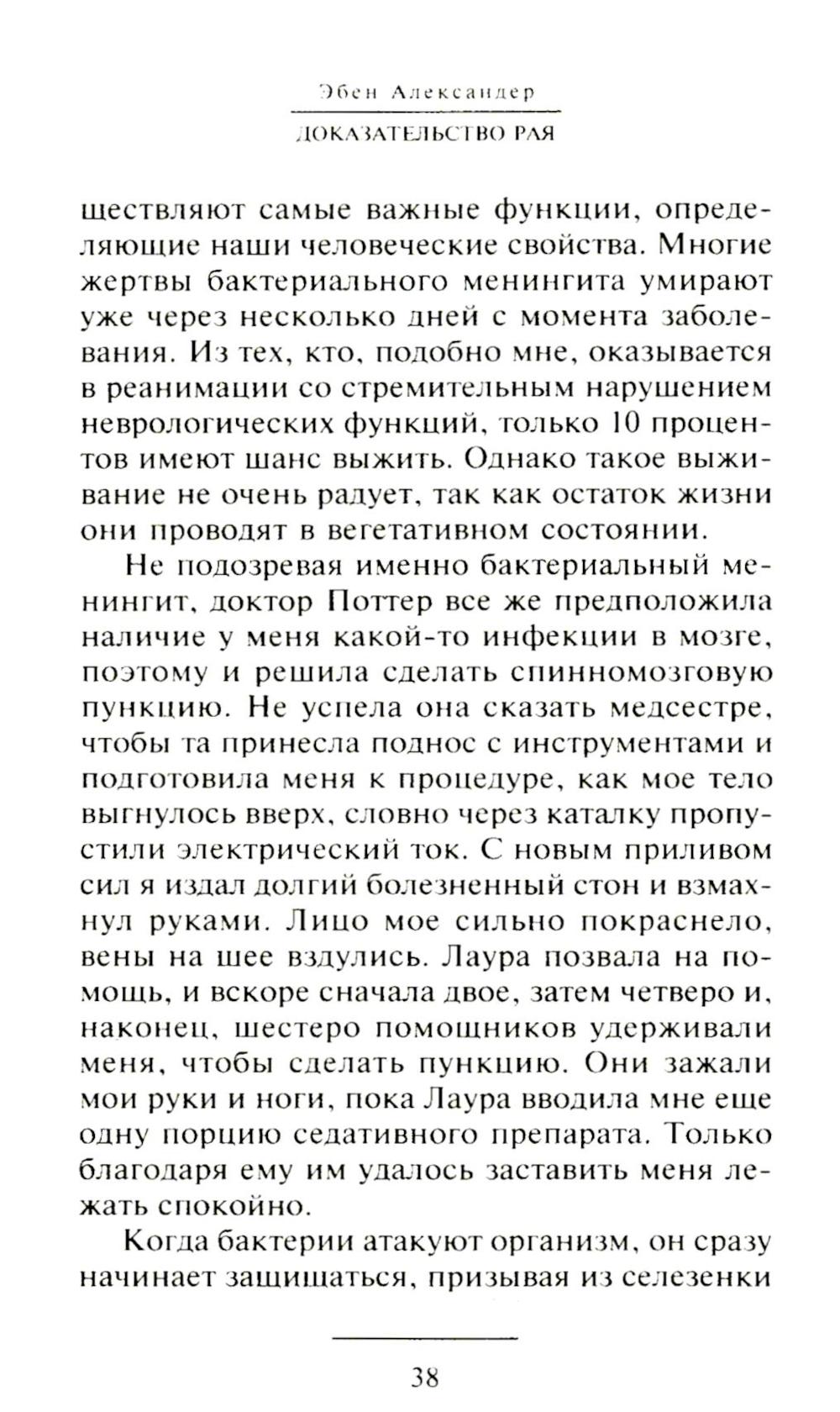 В этой книге доктор Эбен Александер, нейрохирург с 25-летним стажем, профессор, преподававший в Гарвардской медицинской школе и других крупных американских университетах, делится с читателем впечатлениями о своем путешествии на тот свет. Его случай уникален. Пораженный внезапной и необъяснимой формой бактериального менингита, он чудесным образом исцелился после семидневной комы. Высокообразованный медик с огромным практическим опытом, который прежде не только не верил в загробную жизнь, но и мысли о ней не допускал, испытал перемещение своего «я» в высшие миры и столкнулся там с такими поразительными явлениями и откровениями, что, вернувшись к земной жизни, счел своим долгом ученого и врачевателя поведать о них всему миру.| Издательство | Центрполиграф |