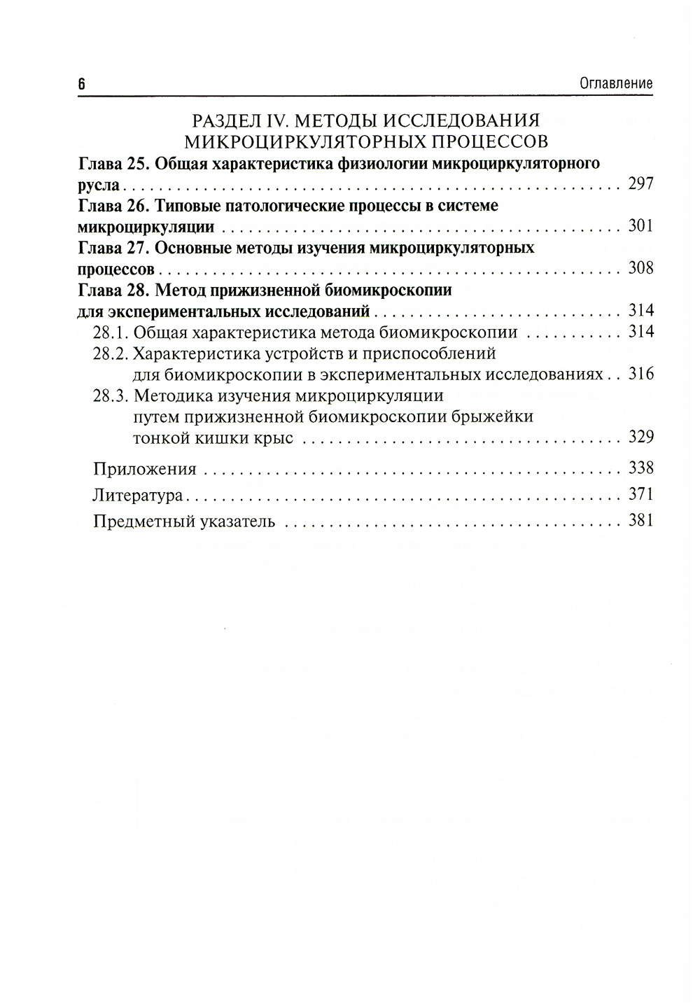адаптогенных свойств, анальгетической, противовоспалительной и регенераторной активности, моделей повреждения печени, экспериментального сахарного диабета. Особое внимание уделено характеристике методов изучения микроциркуляторного русла, в том числе прижизненной биомикроскопии. Включено описание некоторых оригинальных авторских разработок, защищенных патентами РФ (измерительные и фиксирующие устройства, приспособления для биомикроскопии, оригинальные модели и методики).