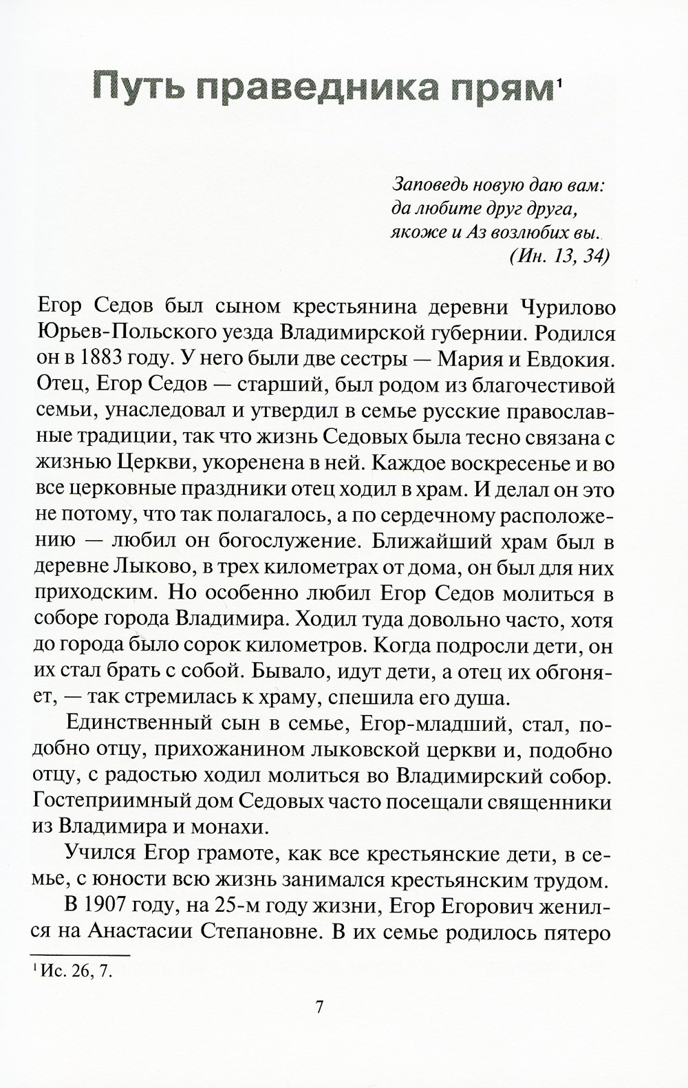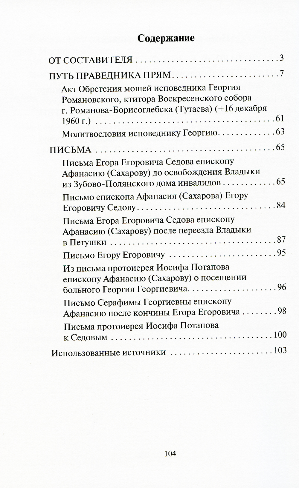 Книга посвящена преданному духовному сыну священноисповедника Афанасия (Сахарова) Георгию Георгиевичу Седову, служившему старостой Воскресенского собора города Тутаева. Этот человек умел деятельно любить Церковь Христову и страдальцев за веру во Иисуса Христа. Ни при каких условиях не прерывал он служения Богу и людям до последнего дня жизни.| Издательство | Рыбинская епархия РПЦ |