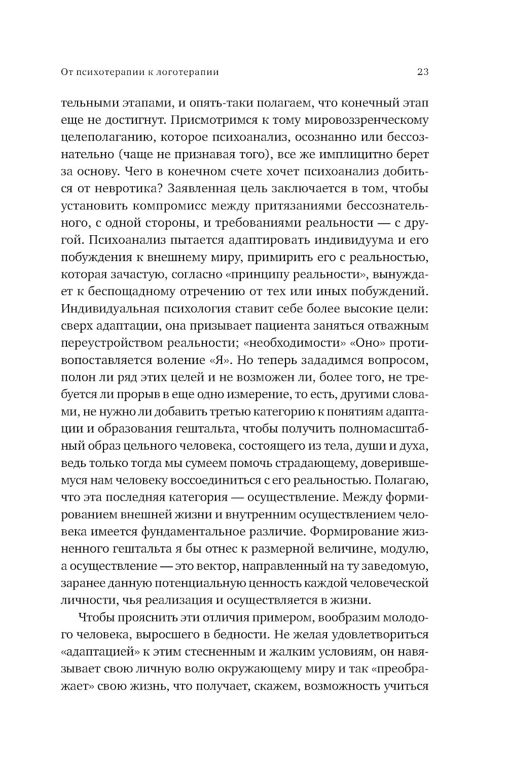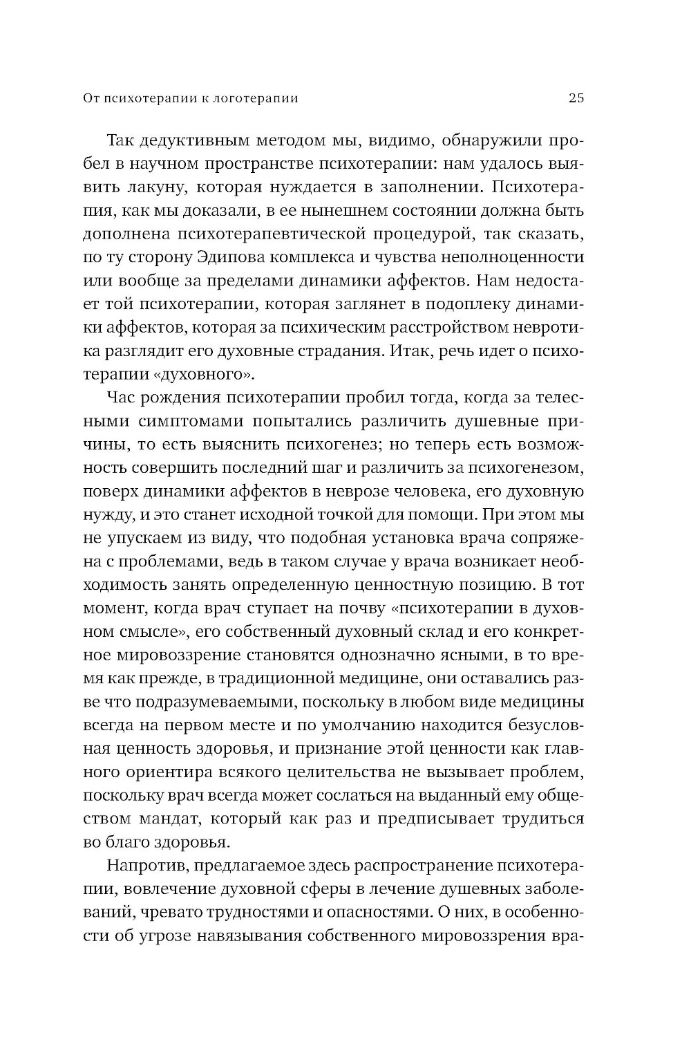 В чем секрет исцеления, когда речь идет о душе человека? В фигуре психотерапевта, в правильно подобранной технике или лекарстве, в желании самого больного? Где проходит грань между медициной и философией в этих сложных вопросах? Эта книга - главный научный труд Виктора Франкла, первый вариант которого он написал еще перед депортацией в концентрационный лагерь. Исследуя концептуальные и эмпирические подходы в психиатрии, Франкл дополняет понимание души понятием духа как ядра личности, которое остается сохранным в любой болезни, показывает роль экзистенциального анализа в лечении душевных расстройств - от неврозов и депрессии до шизофренических психозов. Пациент обращается к психиатру, отчаявшись в поисках цели и смысла жизни. И в этом поиске Франкл видит основное стремление и важнейшую задачу человека, именно на нем строит свой метод (логотерапию), помогающий понять, обрести, вернуть смыслы - смысл жизни, страдания, работы и любви.| Издательство | Альпина нон-фикшн |