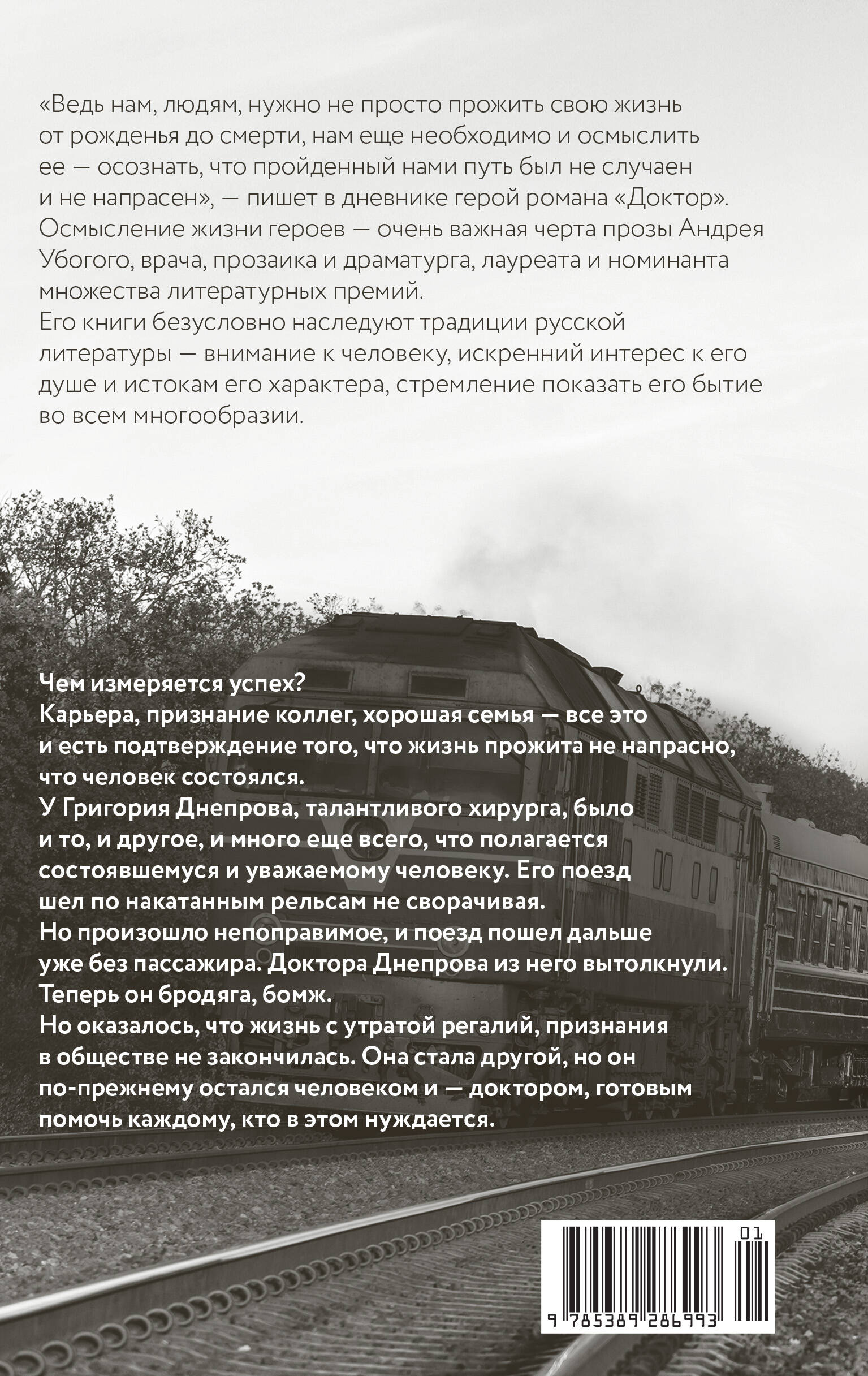 История Григория Днепрова, талантливого доктора, справедливого и мудрого человека, - по сути история о внутренней свободе и жизни без социальных условностей. Карьера, признание коллег, хорошая семья - все это подтверждение того, что жизнь прожита не напрасно, что человек состоялся. У доктора Днепрова было и то, и другое, и много еще всего, что полагается состоявшемуся и уважаемому человеку. Его поезд шел по накатанным рельсам, не сворачивая. Но произошло непоправимое, и поезд пошел дальше уже без пассажира. Доктора Днепрова из него вытолкнули. Теперь он бродяга, бомж. Но оказалось, что жизнь с утратой регалий, признания в обществе не закончилась. Она стала другой, но он по-прежнему остался человеком и - доктором, готовым помочь каждому, кто в этом нуждается.| Издательство | Издательство АЗБУКА ООО |