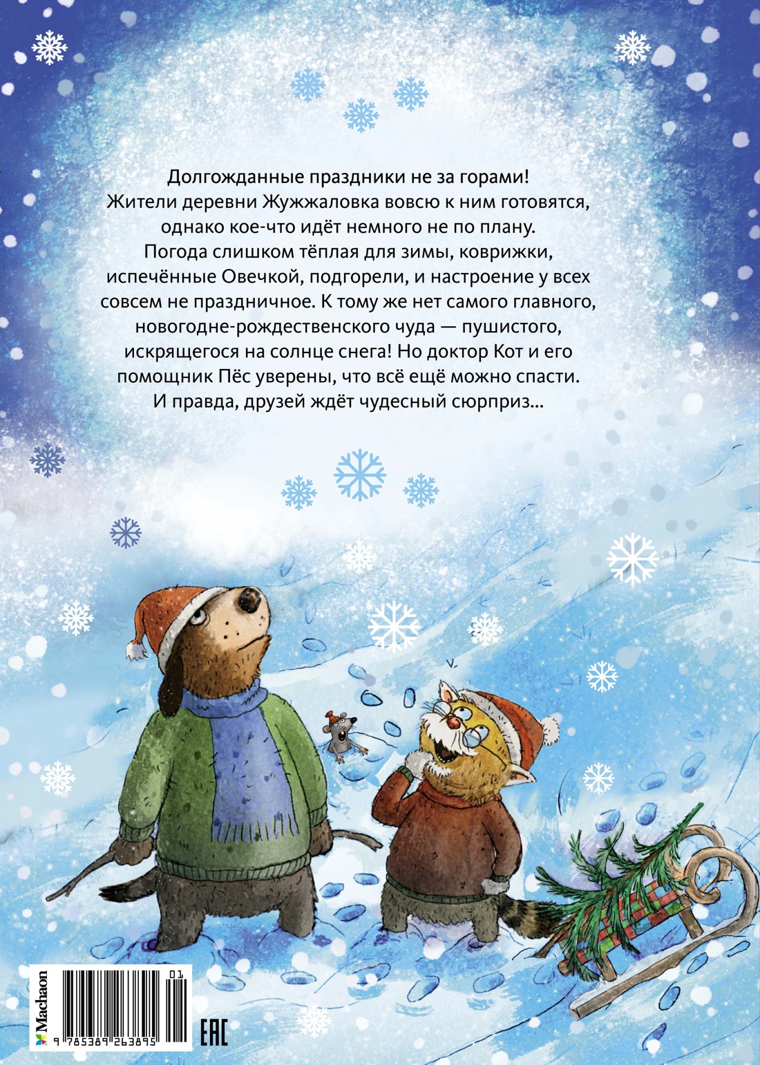 Долгожданные праздники не за горами! Жители деревни Жужжаловка вовсю к ним готовятся, однако кое-что идёт немного не по плану. Погода слишком тёплая для зимы, коврижки, испечённые Овечкой, подгорели, и настроение у всех совсем не праздничное. К тому же нет самого главного, новогодне-рождественского чуда - пушистого, искрящегося на солнце снега! Но доктор Кот и его помощник Пёс уверены, что всё ещё можно спасти. И правда, друзей ждёт чудесный сюрприз...| Издательство | Махаон |