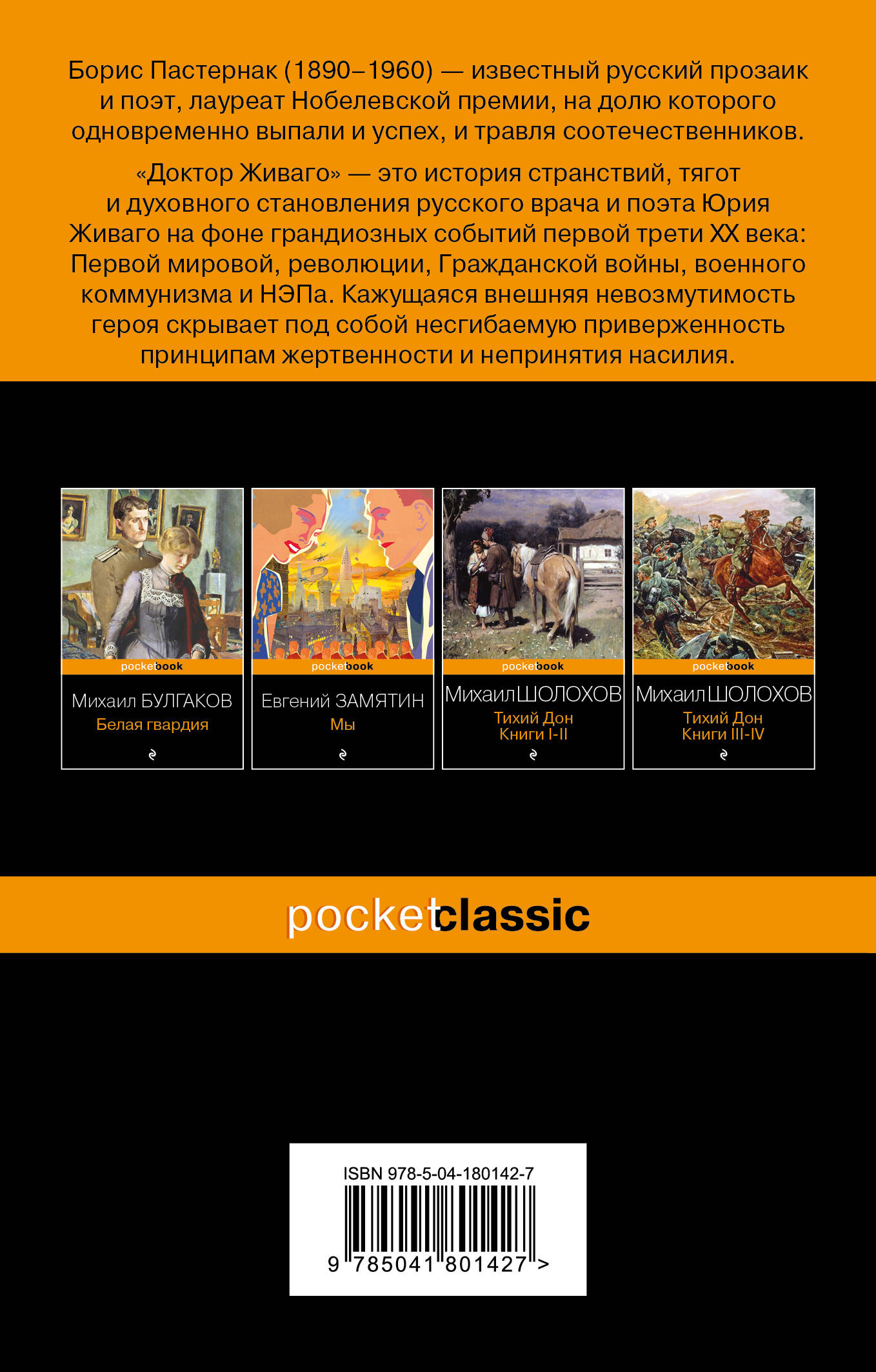 Борис Пастернак (1890-1960) - известный русский прозаик и поэт, лауреат Нобелевской премии, на долю которого одновременно выпали и успех, и травля соотечественников. «Доктор Живаго» - это история странствий, тягот и духовного становления русского врача и поэта Юрия Живаго на фоне грандиозных событий первой трети XX века - Первой мировой, революции, Гражданской войны, военного коммунизма и НЭПа. Кажущаяся внешняя невозмутимость героя скрывает под собой несгибаемую приверженность принципам жертвенности и непринятия насилия.| Издательство | ООО "Издательство "Эксмо" |