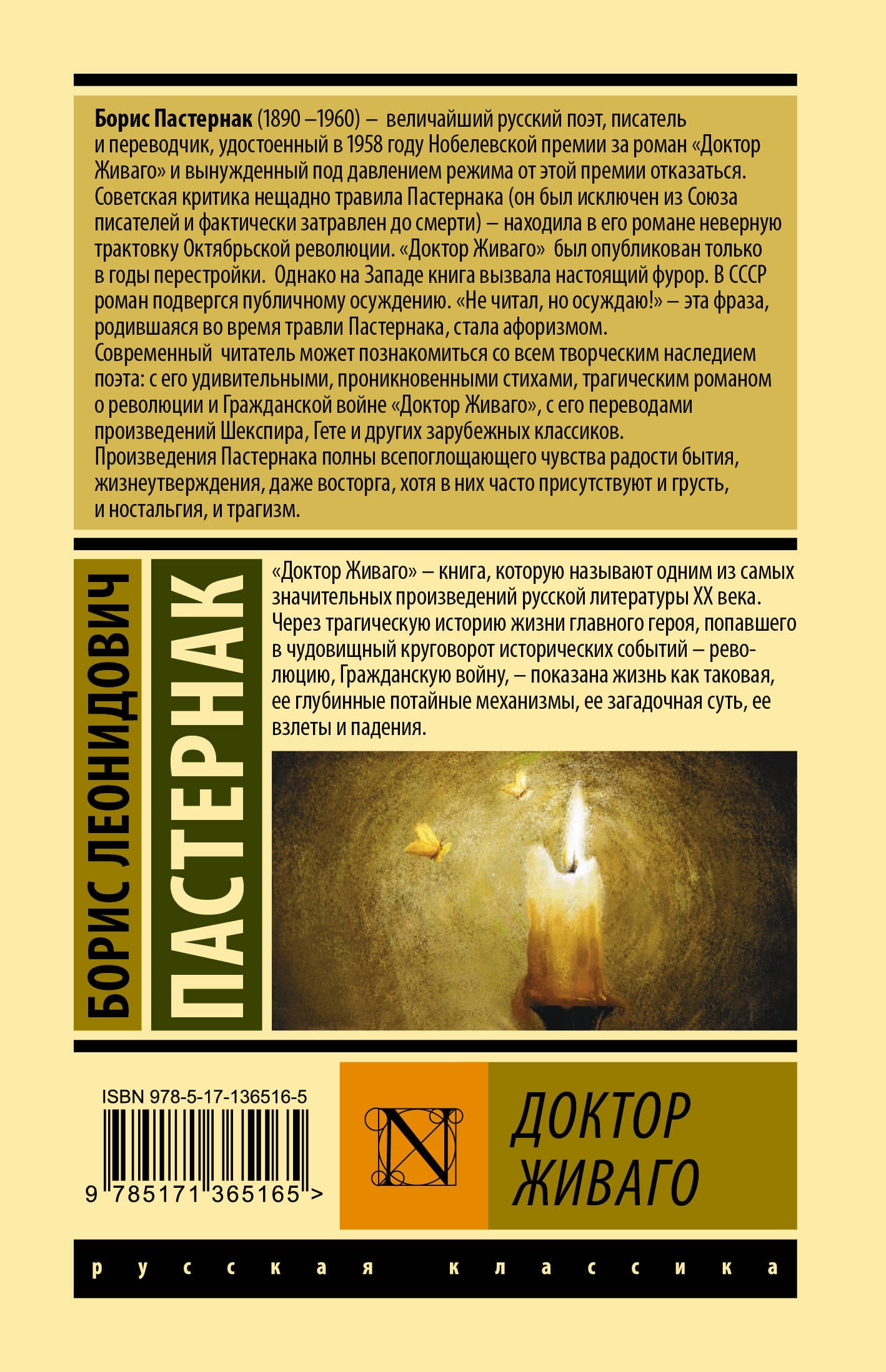 "Доктор Живаго" - книга, которую называют одним из самых значительных произведений русской литературы ХХ века. Через трагическую историю жизни главного героя, попавшего в чудовищный круговорот исторических событий - революцию, Гражданскую войну, - показана жизнь как таковая, ее глубинные потайные механизмы, ее загадочная суть, ее взлеты и падения.| Издательство | ИЗДАТЕЛЬСТВО "АСТ" |
