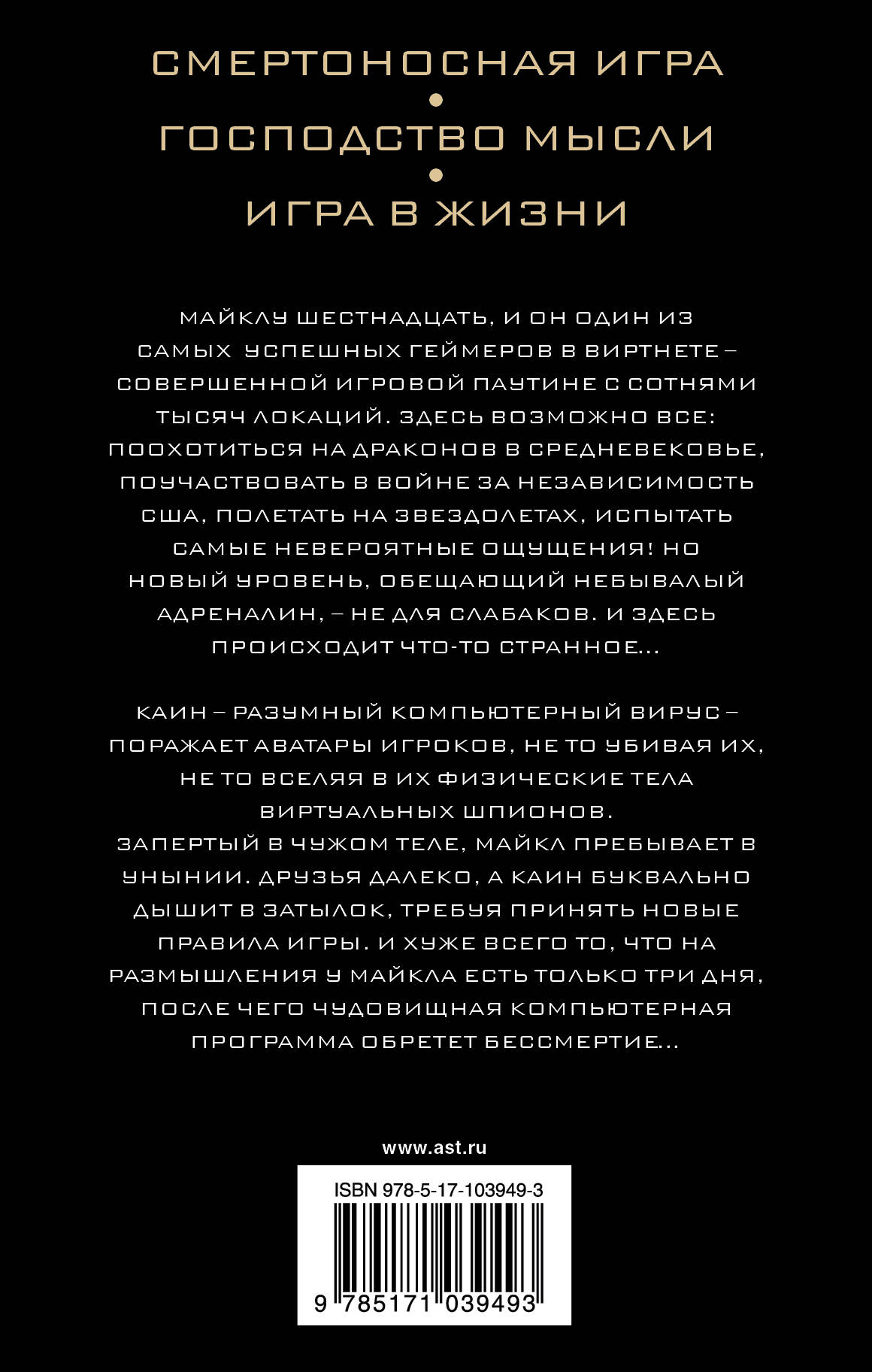Майклу шестнадцать, и он - один из самых успешных геймеров в виртнете - совершенной игровой паутине с сотнями тысяч локаций. Здесь возможно все: поохотиться на драконов в средневековье, поучаствовать в войне за независимость США, полетать на звездолетах, испытать самые невероятные ощущения! Но новый уровень, обещающий небывалый адреналин - не для слабаков. И здесь происходит что-то странное… Что, если игра - смертельно опасна, и войдя в нее, посетитель может уже не проснуться? Нечто захватывает людей, порабощает их мозг, стирает личность. И только самому отважному и осторожному игроку под силу сразиться со злом, укрывшимся в виртуальном мире!| Издательство | ИЗДАТЕЛЬСТВО "АСТ" |
