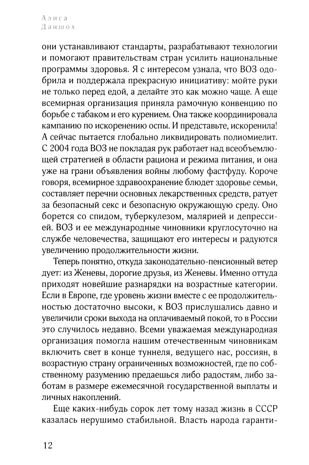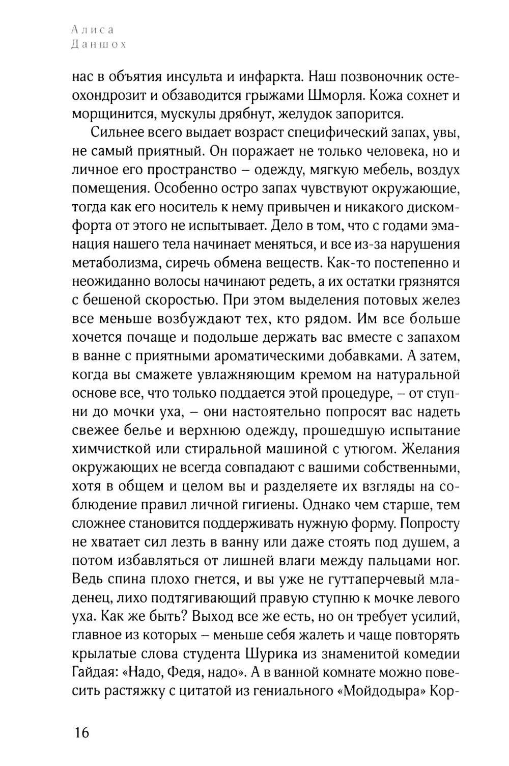 Писатель, обозреватель «Литературной газеты» Алиса Даншох взяла на себя смелость провести с читателем откровенный разговор о таком удручающем предмете, как старение. Мы с юности привыкаем отгораживаться от него всеми доступными способами, а автор предлагает смело взглянуть ему в глаза и убедиться в том, что стареть можно достойно, не теряя самоуважения и не становясь обузой или вечным укором для близких.| Издательство | ИПО "У Никитских ворот" |