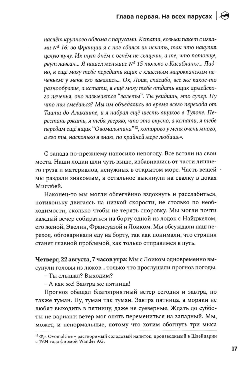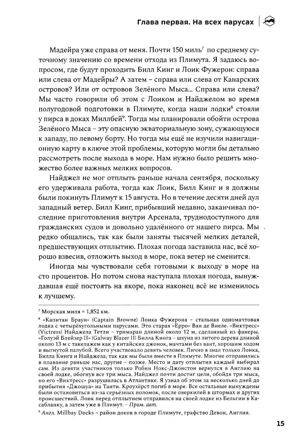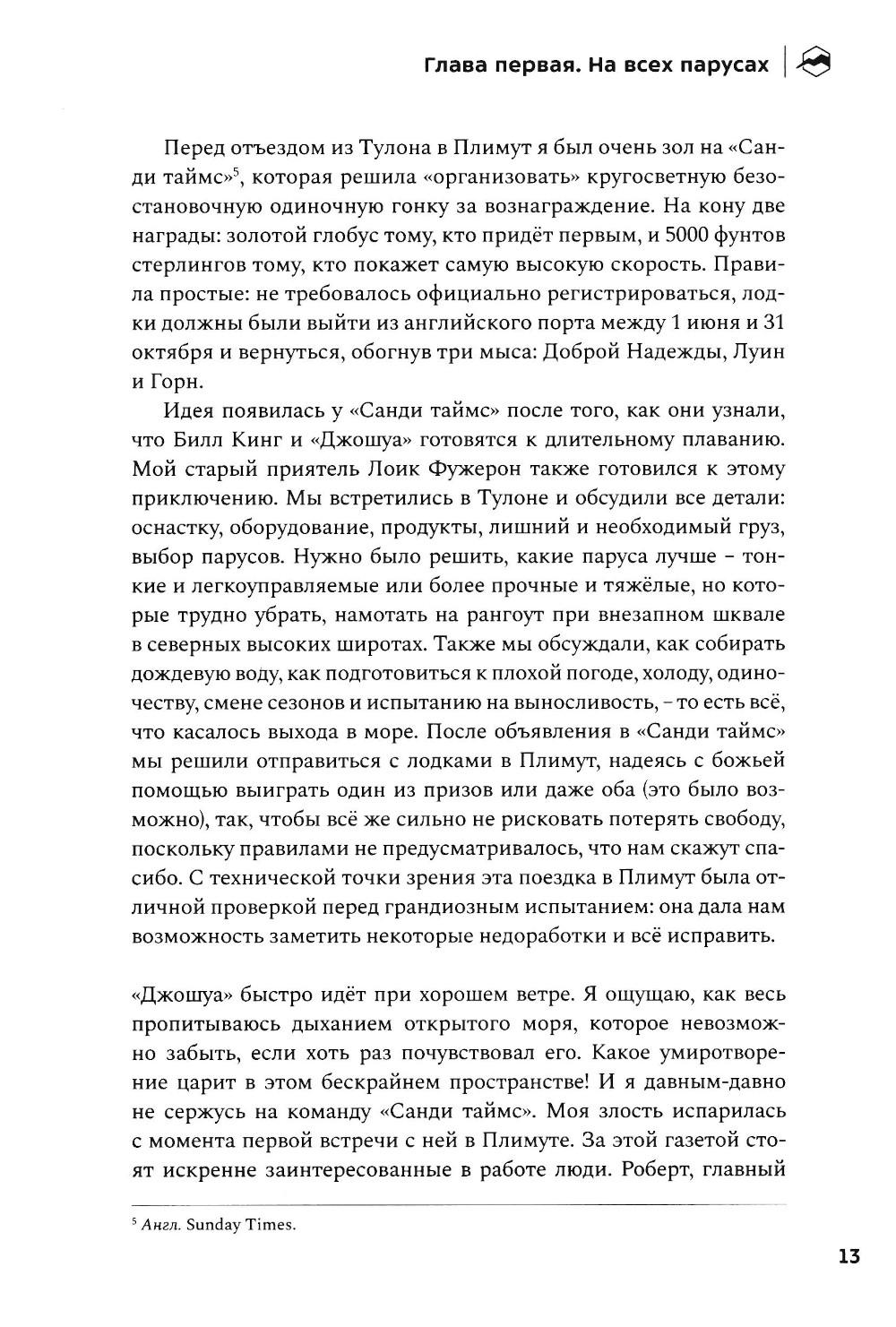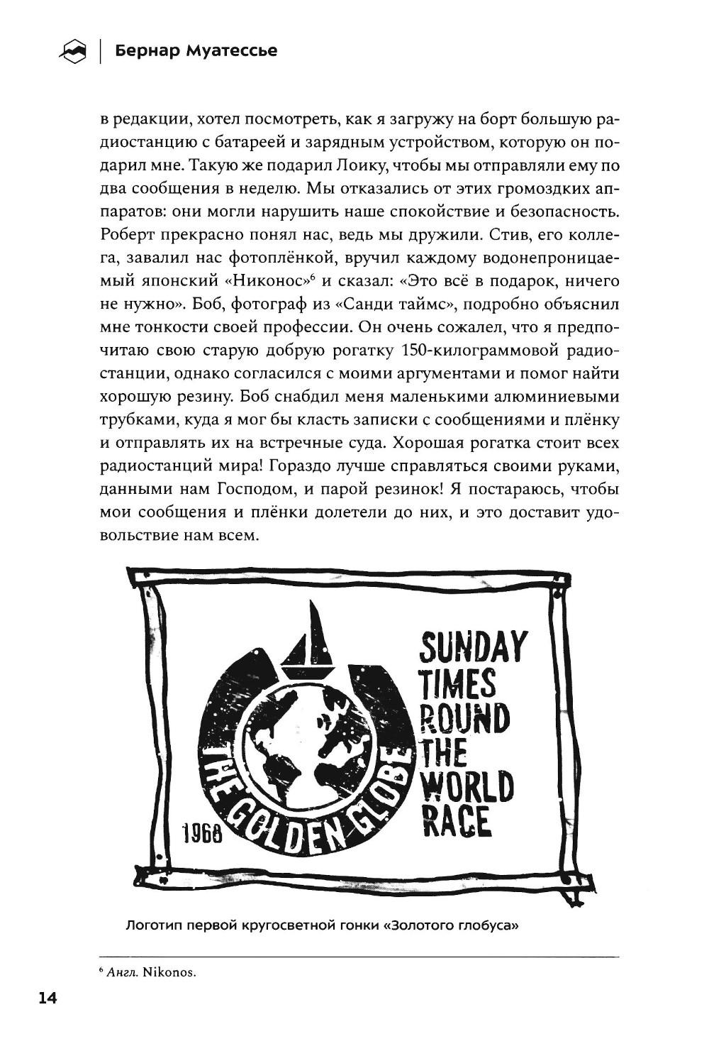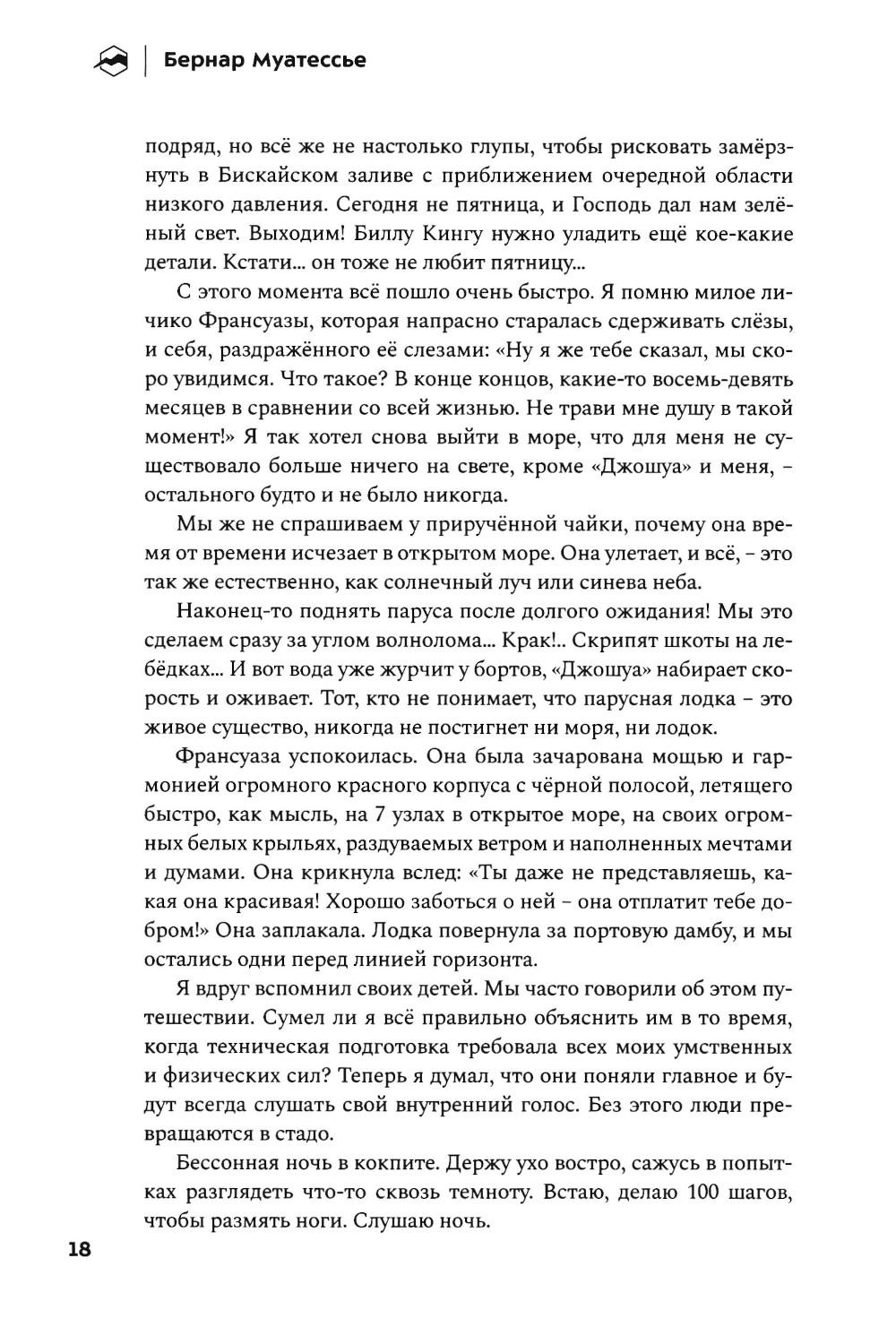 Невероятная история выдающегося французского мореплавателя Бернара Муатессье, участника первой кругосветной гонки «Золотой глобус» - одиночного безостановочного плавания вокруг трёх великих мысов: Доброй Надежды, Луин и Горн. Автор провёл в море десять месяцев. Он ни разу не коснулся суши, практически дважды обогнув земной шар и преодолев за время пути 37 455 миль. Эта книга - искренний разговор с морем и ветром о стойкости, страхе, страсти и надежде.| Издательство | Библиотека Спорт-Марафон |